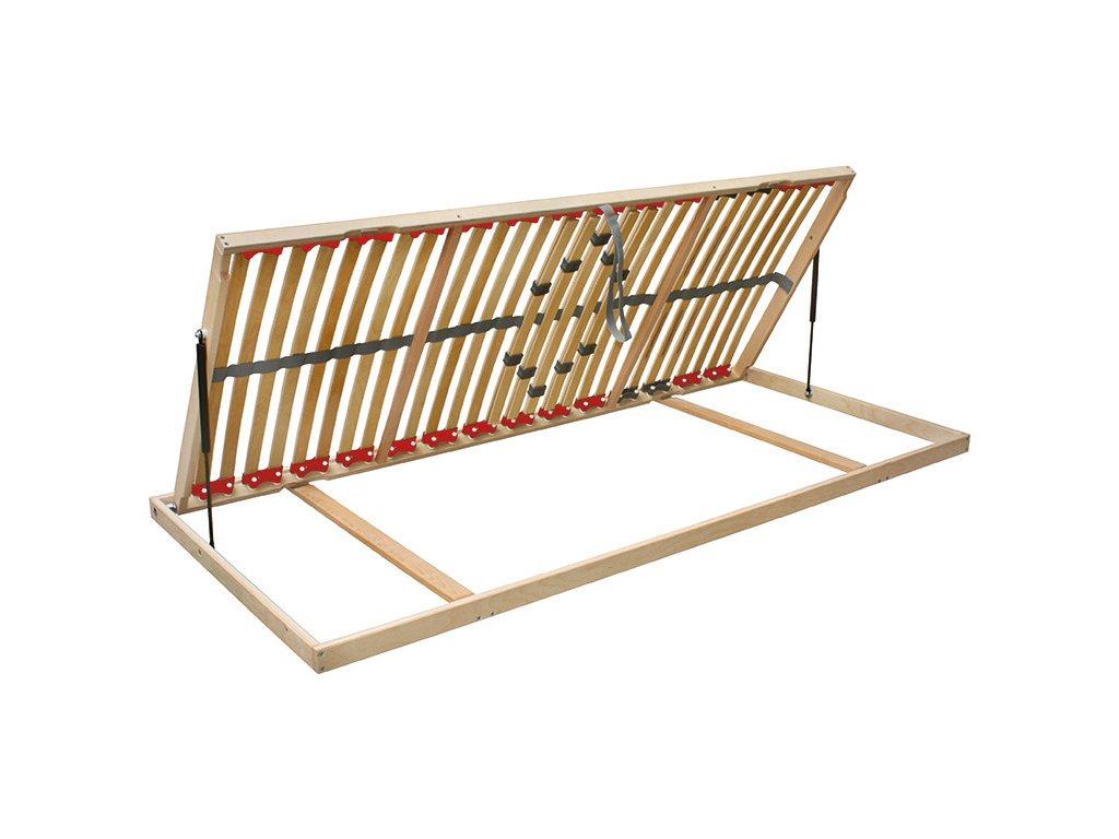 CASA 65004 Lamelový rošt ze dřeva v šíři 80 cm levý. Rošt má 28 lamel v pružných kaučukových pouzdrech ( kaučukové výkyvné duo kapsy na kolíku ). Rovnoměrně rozkládá váhu těla na plochu matrace, obsahuje posuvné objímky pro individuální nastavení tuhosti v bederní oblasti ( 5 výztuh ). Obsahuje také středový popruh pro zlepšení stability roštu. Nosnost roštu je 120 kg. Rošt je výklopný pomocí plynových pístů. Vhodný k postelím s úložným prostorem, kde vkládáte věci z boku.
