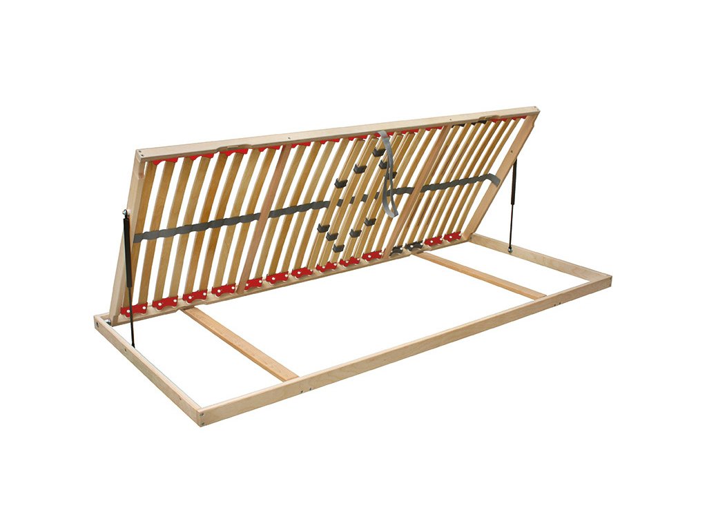 CASA 65004 Lamelový rošt ze dřeva v šíři 90 cm levý. Rošt má 28 lamel v pružných kaučukových pouzdrech ( kaučukové výkyvné duo kapsy na kolíku ). Rovnoměrně rozkládá váhu těla na plochu matrace, obsahuje posuvné objímky pro individuální nastavení tuhosti v bederní oblasti ( 5 výztuh ). Obsahuje také středový popruh pro zlepšení stability roštu. Nosnost roštu je 120 kg. Rošt je výklopný z obou stran pomocí plynových pístů. Vhodný k postelím s úložným prostorem, kde vkládáte věci z boku.