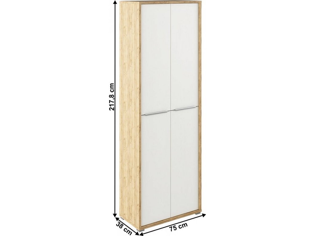 Vysoká skříň RIOMA TYP 05 Barevné provedení: dub artisan/bílá Materiál: DTD laminovaná Rozměry (ŠxHxV): 75x38x217,8 cm Tloušťka materiálu: 16/22 mm Dodávané v demontu