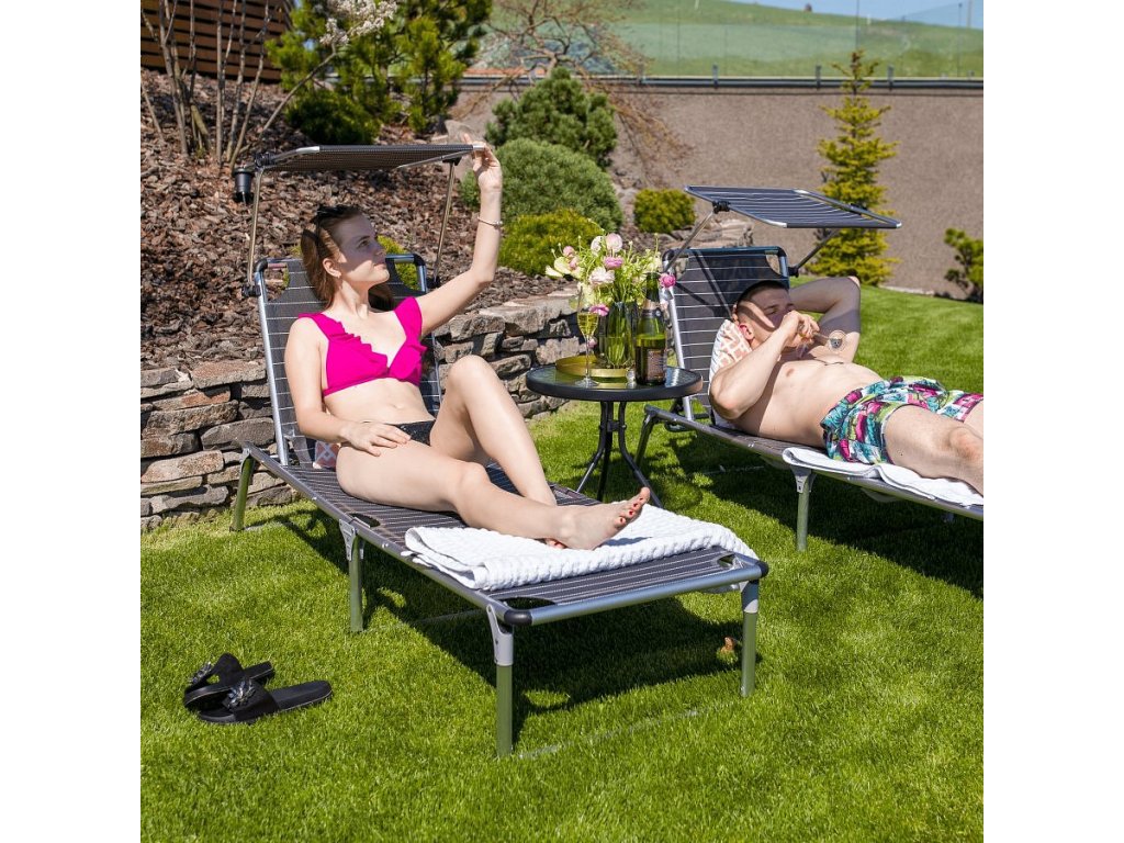 Zahradní příruční stolek, černá ocel/tvrzené čiré sklo, HABIR