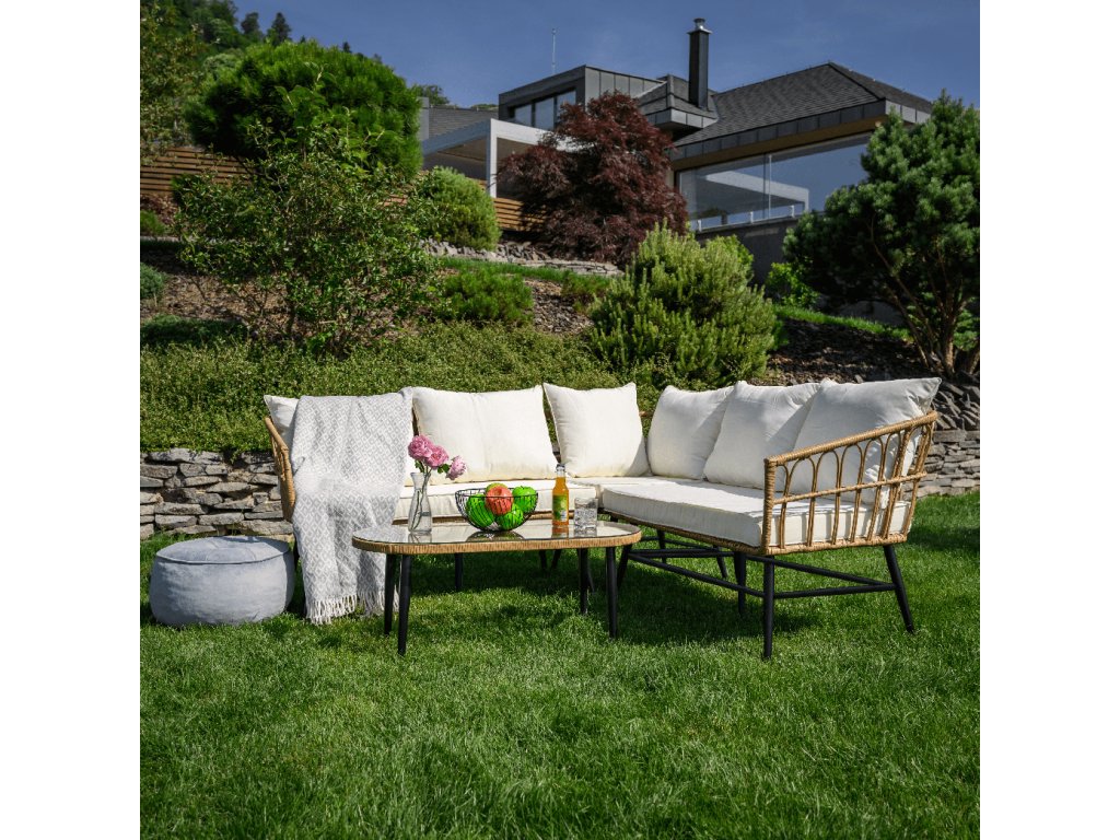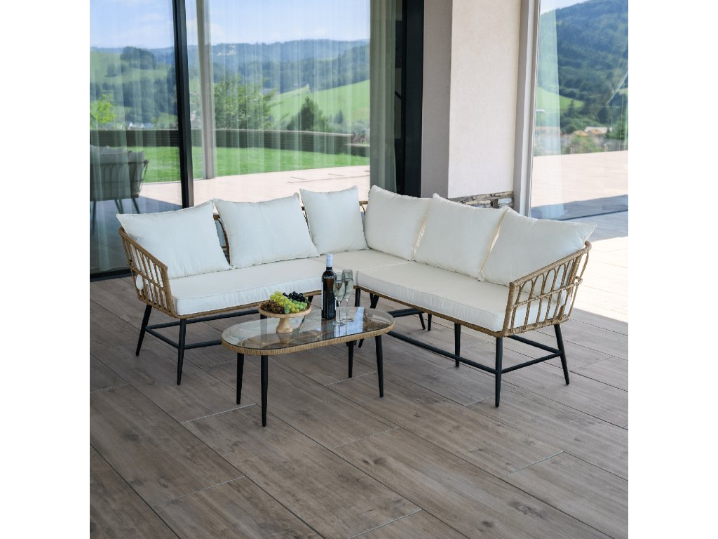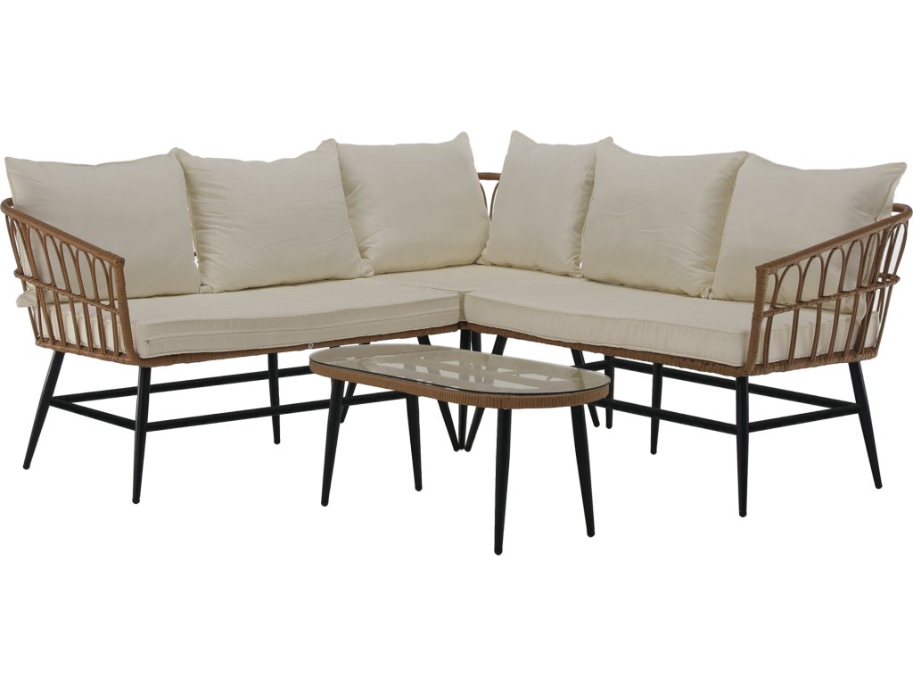Zahradní ratanový set, přírodní/béžová/černá, ARALY