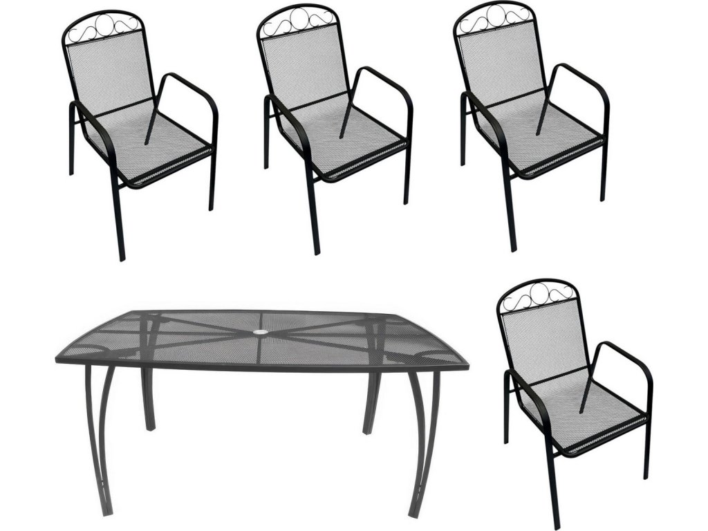 CASA 96013+96014 Zahradní kovová sestava se skládá z těchto komponentů, rozměry ( Š x V x H cm): 4x křeslo - ( 57 x 94 x 69 cm ) a stůl - ( 90 x 71 x 150 cm). Výška sedu křesla je cca 43 cm. Díky použitým materiálům není údržba sestavy nijak náročná. Barevné provedení - černá. Jednotlivé díly lze zakoupit zvlášť.