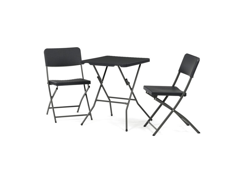 Zahradní sestava zahrnuje kompaktní stůl o rozměru 60 cm a dvě skládací židle, které jsou vyrobeny z odolného šedého plastu a kovu. Plastová deska stolu je snadno udržovatelná a odolná vůči povětrnostním vlivům, zatímco kovová podnož zajišťuje stabilitu a pevnost celé sestavy. Židle jsou navrženy pro jednoduché skládání a skladování, což usnadňuje manipulaci a šetří místo při uskladnění mimo sezónu. Celý set je ideální pro menší zahradní prostory, balkony nebo terasy, kde je potřeba praktický a funkční nábytek s dlouhou životností. Neutrální šedá barva umožňuje snadné sladění s různými venkovními dekoracemi.