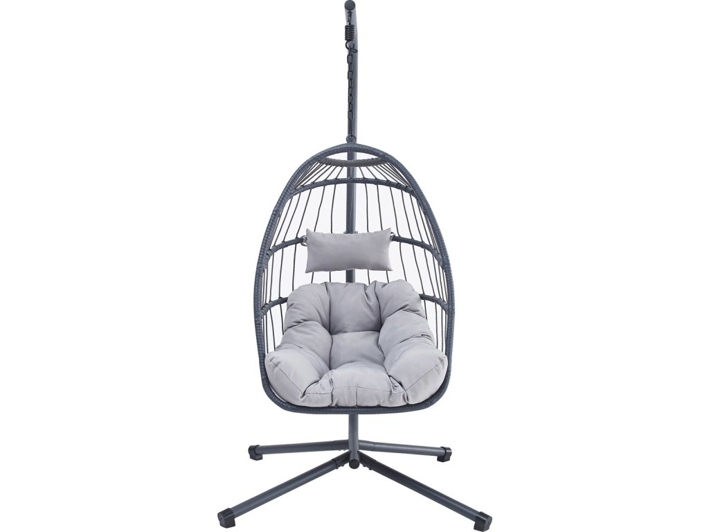 Zahradní závěsné křeslo, výplet antracit umělý ratan, potah šedá látka AZ-V1269 GREY
