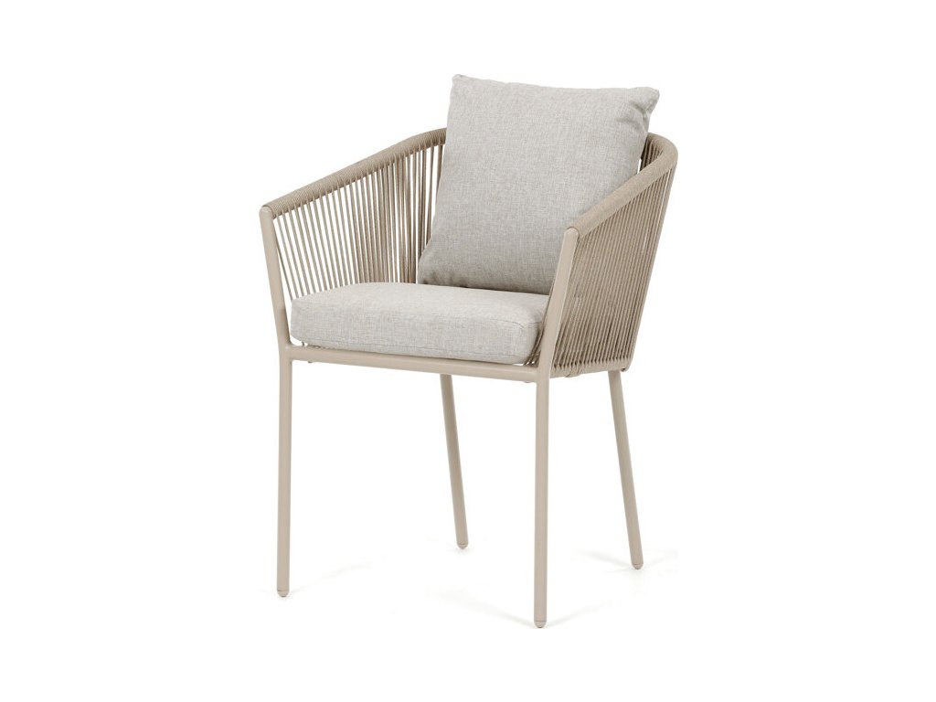 Zahradní židle s hliníkovou konstrukcí v krémovém odstínu nabízí kombinaci lehkosti a pevnosti vhodnou pro venkovní použití. Sedák a opěradlo jsou potažené rychleschnoucí látkou, která je voděodolná a odolná vůči povětrnostním vlivům, což zajišťuje snadnou údržbu a dlouhou životnost i při častém venkovním používání. Design židle je doplněn pohodlnými polštáři v béžové barvě, které zvyšují komfort sezení. Konstrukce je stabilní a zároveň lehká, což usnadňuje manipulaci a přemísťování. Rozměry a nosnost jsou přizpůsobeny běžným potřebám zahradního nábytku.