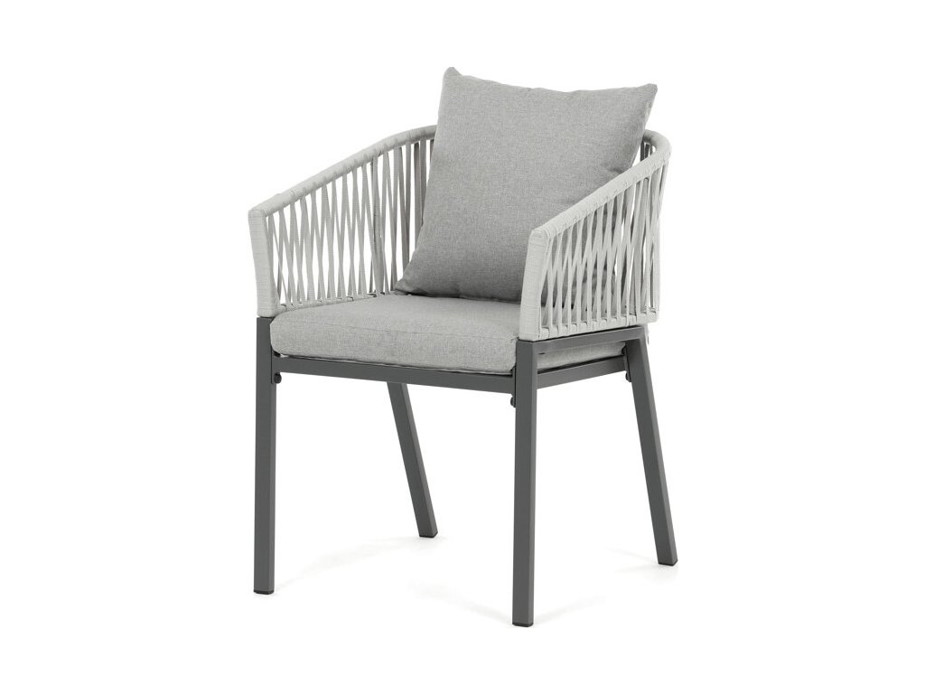 Zahradní židle s pevnou kovovou podnoží v šedém odstínu nabízí stabilitu a dlouhou životnost i při venkovním použití. Sedák a opěradlo jsou čalouněné šedou látkou, která je příjemná na dotek a vhodná pro relaxaci na zahradě či terase. Nadčasový design s jednoduchými liniemi a decentním propletením na opěradle zajišťuje univerzální využití v různých venkovních prostorách. Židle kombinuje komfort s odolností materiálů, což ji předurčuje k pravidelnému užívání v exteriéru. Díky svému provedení je snadná na údržbu a zároveň vizuálně přitažlivá.