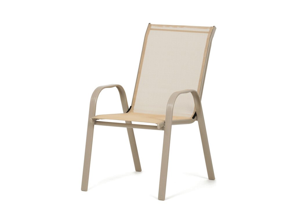 Zahradní židle v krémovém provedení kombinuje pevný kovový rám se sedákem a opěradlem z krémové síťoviny, které zajišťují pohodlné posezení venku. Konstrukce je navržena tak, aby byla stohovatelná, což usnadňuje skladování a manipulaci při sezónním ukládání. Kovová podnož je opatřena práškovým lakem, který chrání proti povětrnostním vlivům a zajišťuje dlouhou životnost. Ergonomický tvar opěradla podporuje správné držení těla během odpočinku. Rozměry a nosnost odpovídají běžným standardům zahradního nábytku, což umožňuje univerzální použití na terasách, balkonech i zahradách.