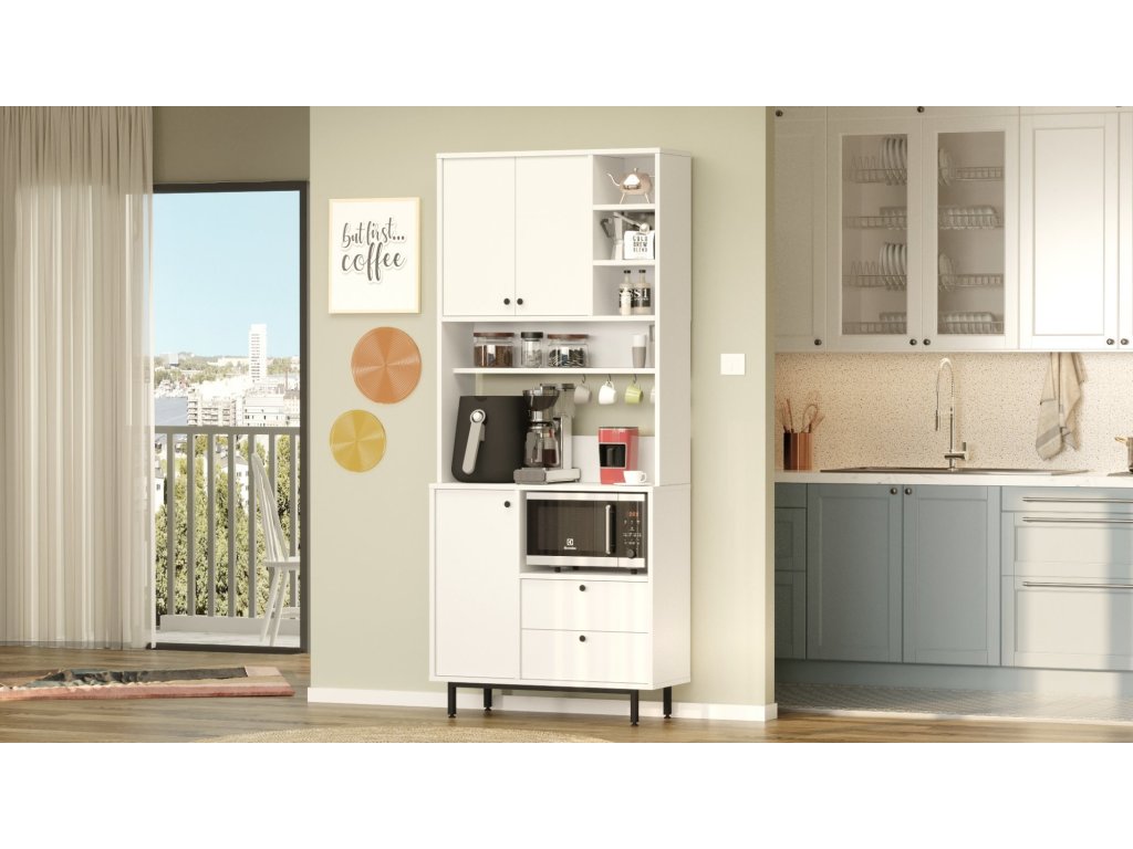 – Vysoká policová skříň na mikrovlnku s víceúčelovým designem