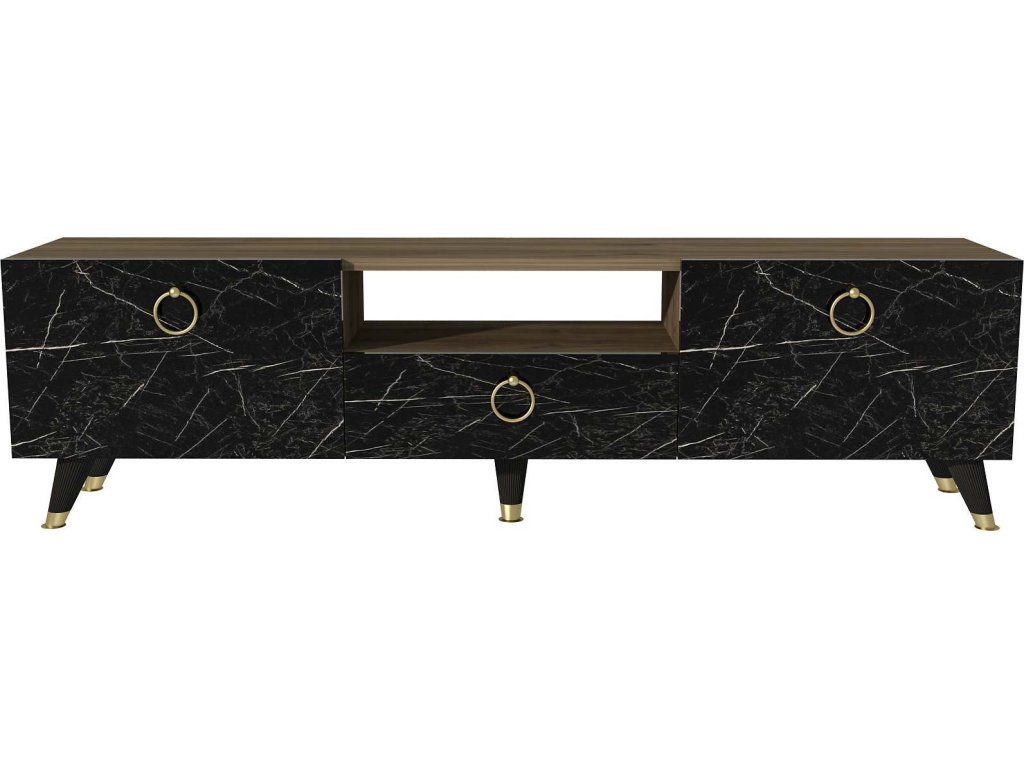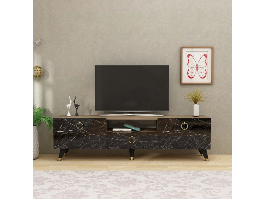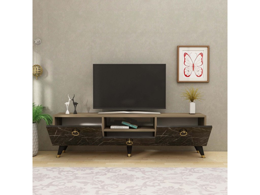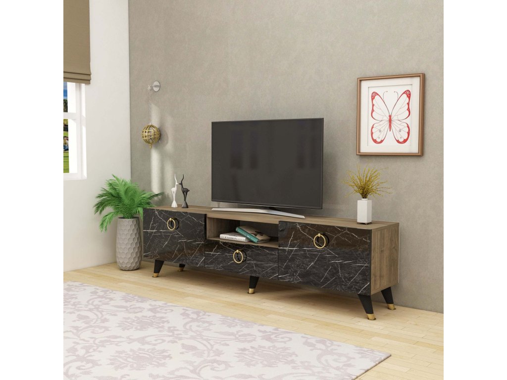 Stolek spojuje elegantní design s praktickým uspořádáním. Jeho robustní konstrukce a kvalitní materiály zajišťují dlouhou životnost, zatímco luxusní provedení dodá vašemu interiéru sofistikovaný vzhled. Pořiďte si TV stolek a dodejte svému obývacímu pokoji styl a praktičnost!