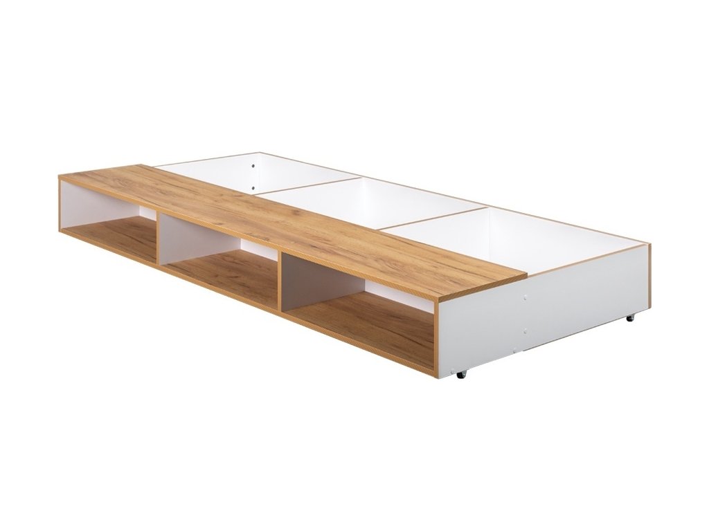CASA 98233 Zásuvka pod postel je vyrobena z desky LTD v barevném provedení bílá/dub kraft zlatý. Dodáváme v demontovaném stavu.