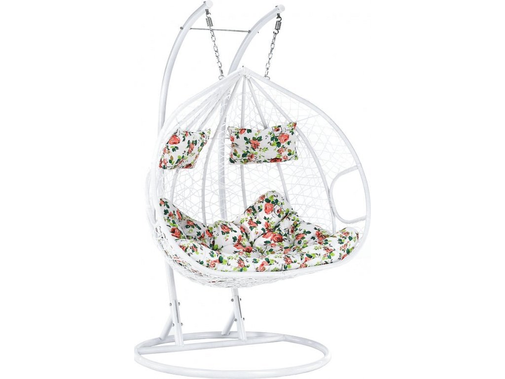 Závěsné dvojkřeslo, bílá/vzor květiny, DALVEA 2 NEW