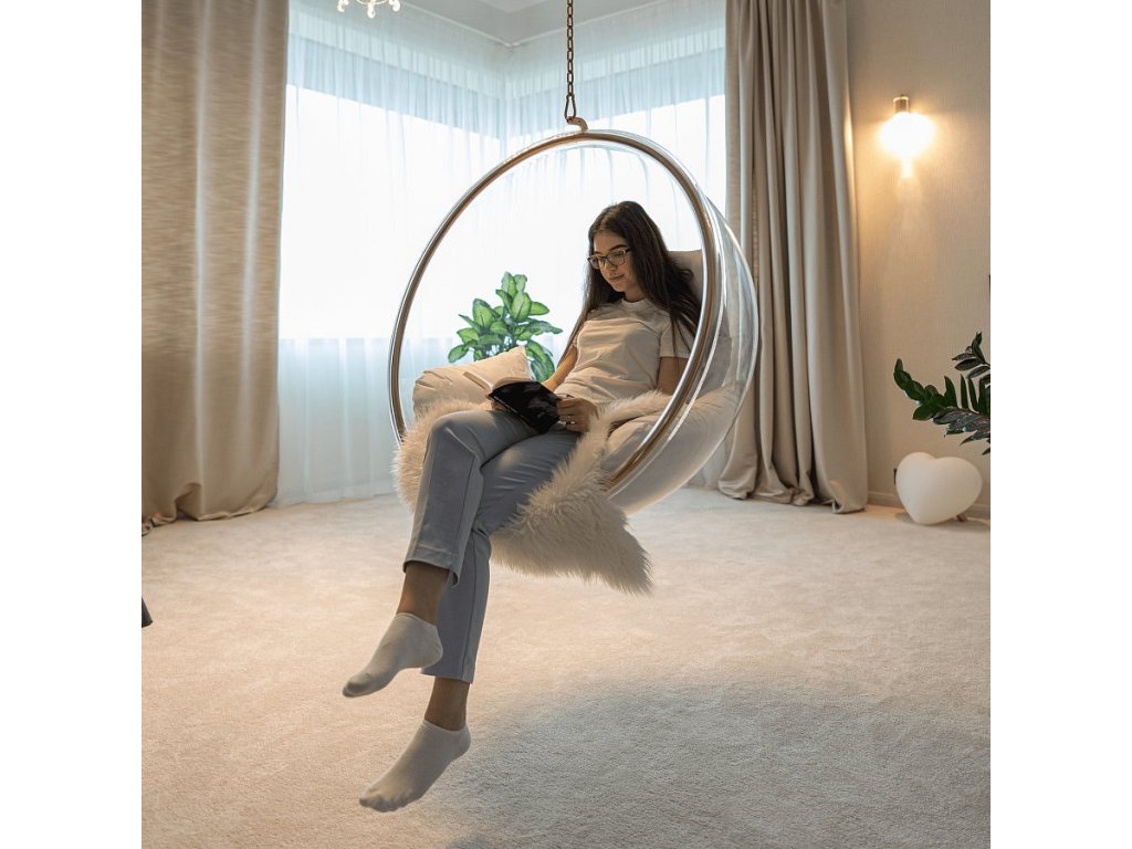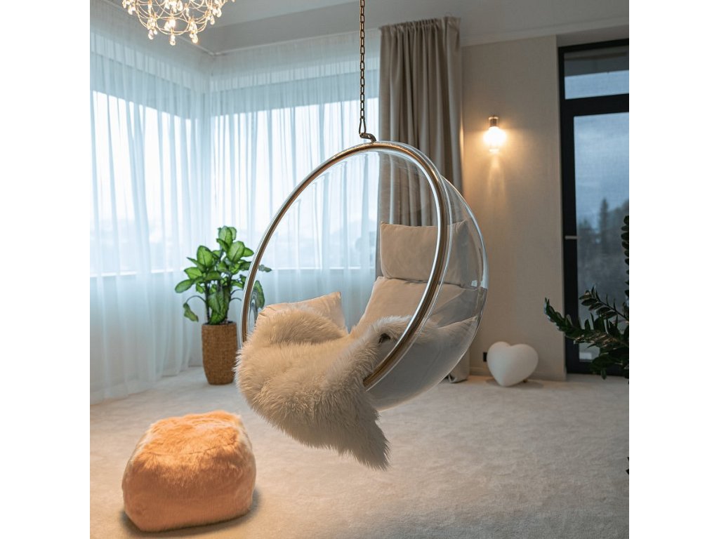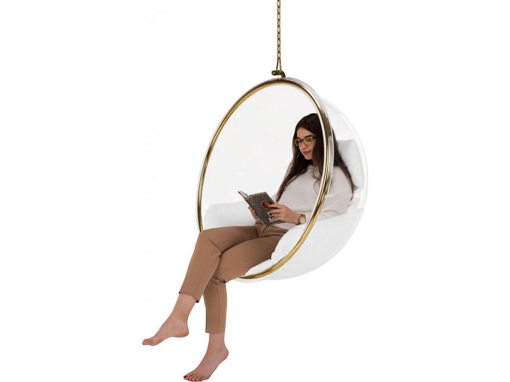 Závěsné křeslo, transparentní/zlatá/bílá, BUBBLE NEW TYP 1