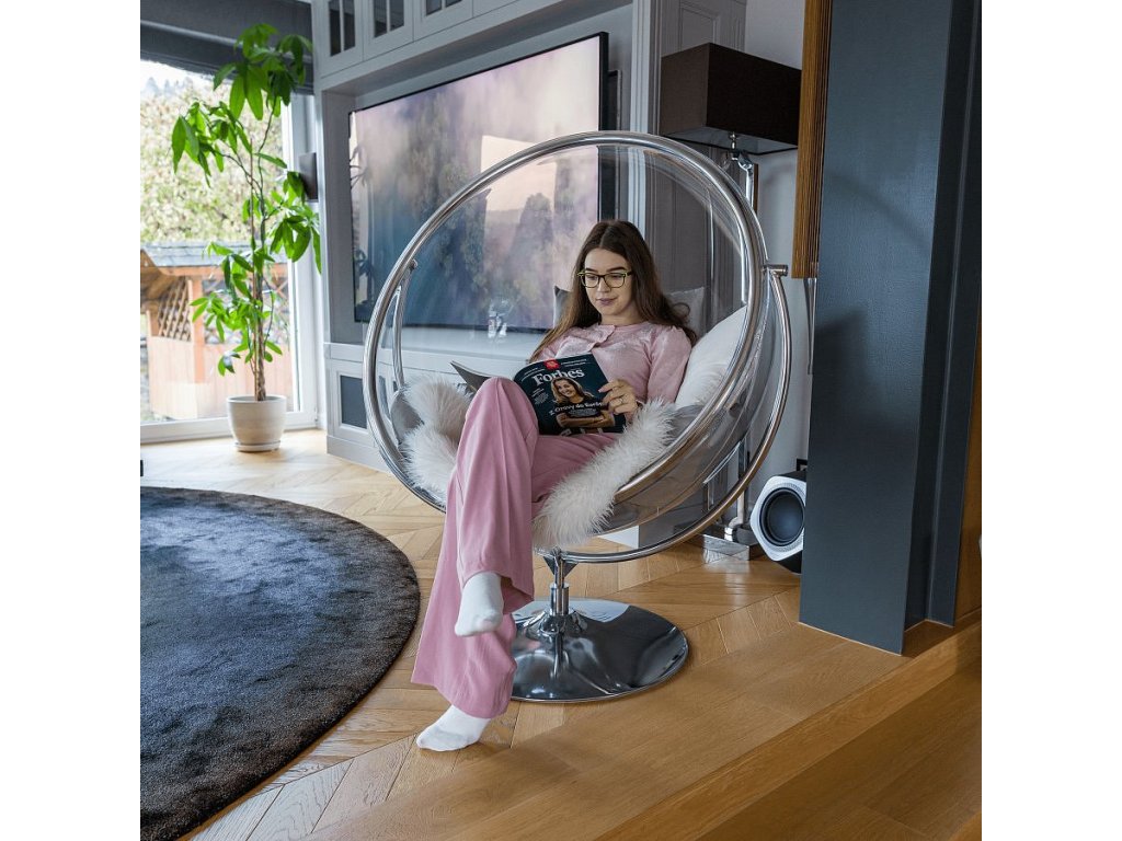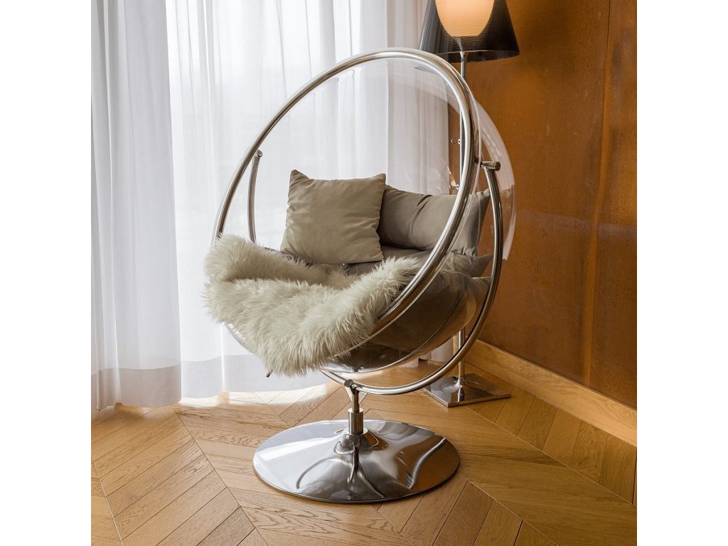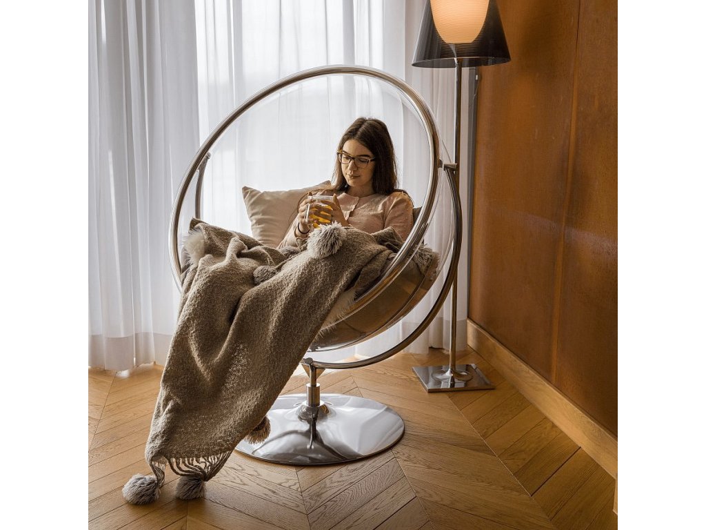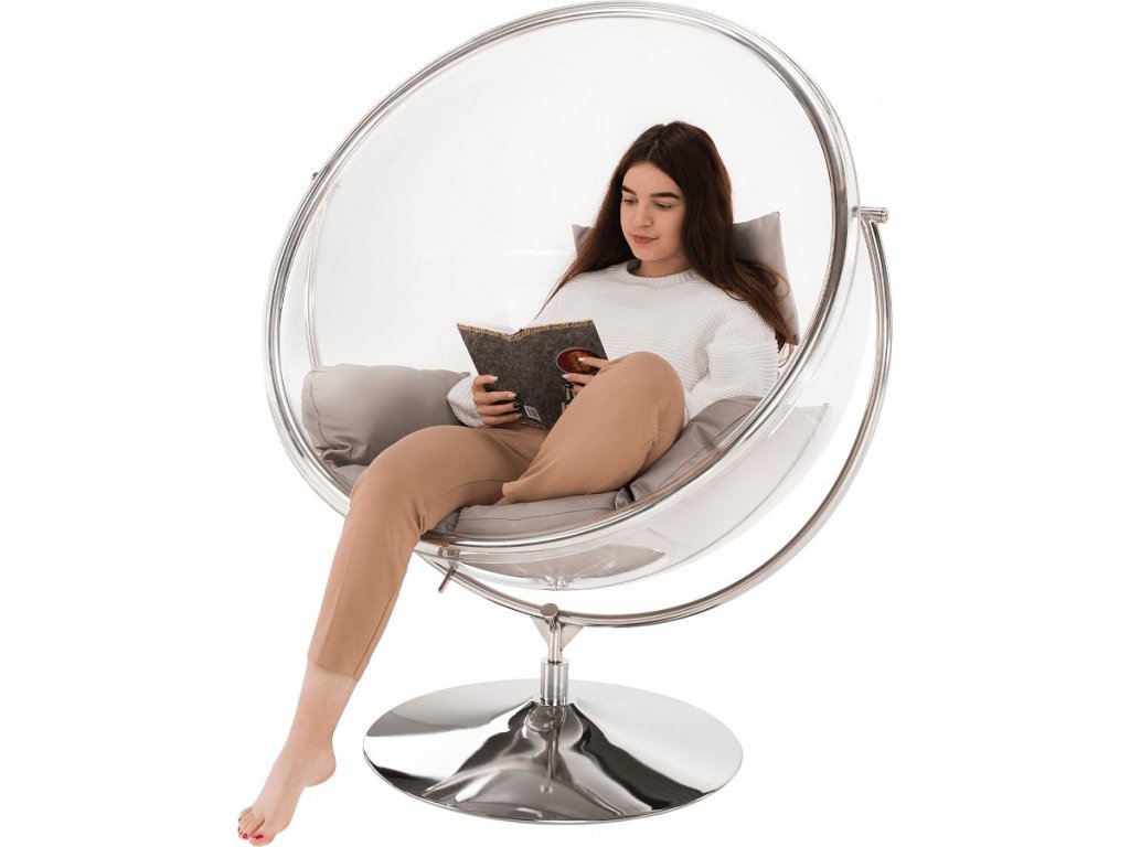 Závesné kreslo so stojanom, transparentná/strieborná/sivá, BUBBLE NEW TYP 2