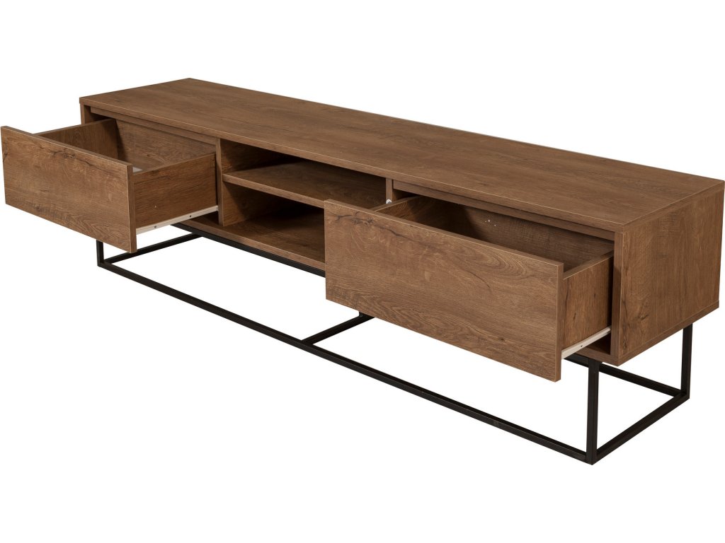 Stolek nabízí ideální kombinaci úložného prostoru. Dvě zásuvky poskytují místo pro uschování multimediálních zařízení, kabelů či drobností, zatímco otevřený regálek je perfektní pro dekorace, knihy nebo herní konzole. Díky svému širokému designu poskytuje dostatek prostoru pro televizor i další doplňky.
