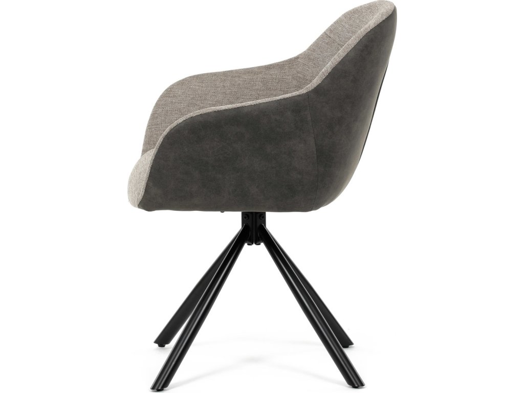 Židle jídelní, béžová látka a tmavě šedá látka v dekoru vintage kůže, černý kov, otočná P90°+ L90° s vratným mechanismem DCH-Y1143 BG2