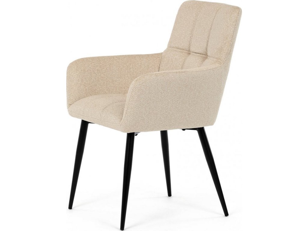 Elegantní krémová jídelní židle od značky Autronic skvěle doplní moderní i klasické interiéry. Tato stylová židle nabízí vysoký komfort díky čalounění z kvalitní látky a mekkému sedáku z PU pěny. Černé kovové nohy zajišťují stabilitu a dodávají židli jemný industriální nádech. Komfortní područky a ergonomické provedení oceníte při každém posezení. Židle se hodí nejen do domácí jídelny, ale i do restauračních prostor, kde vytvoří útulnou atmosféru.