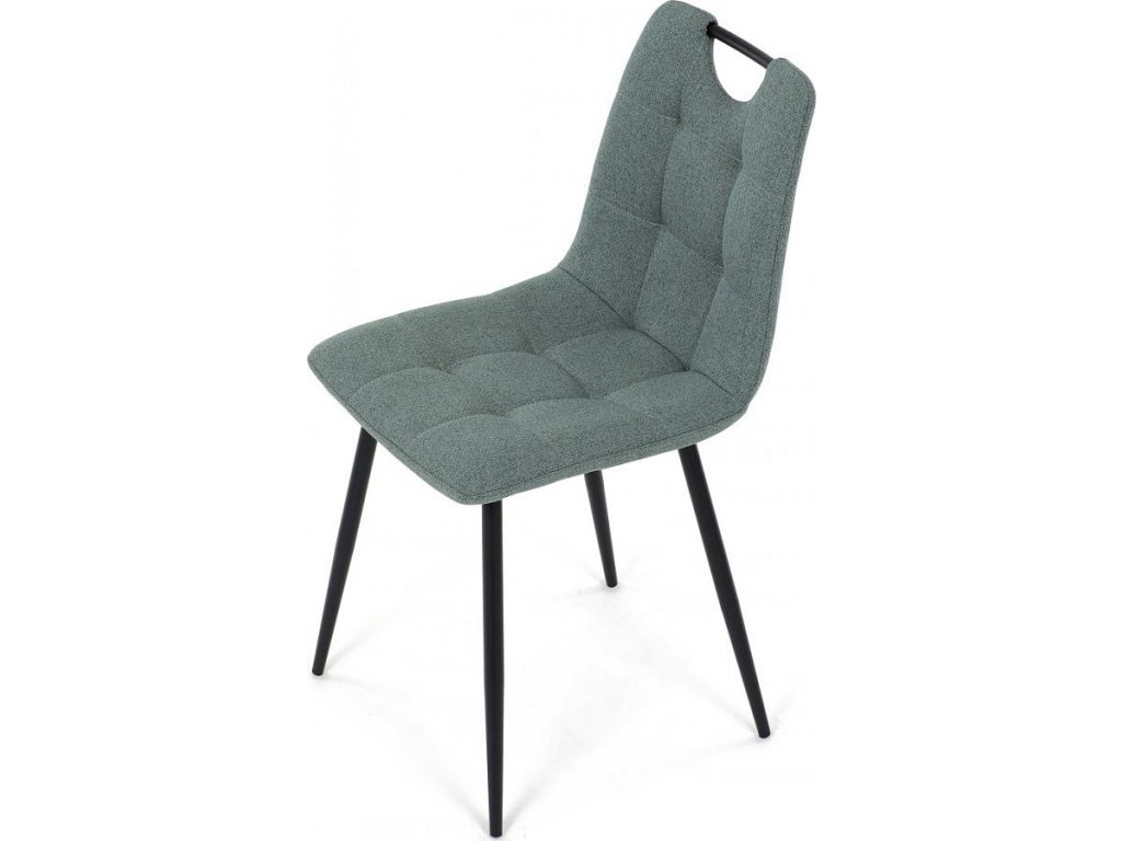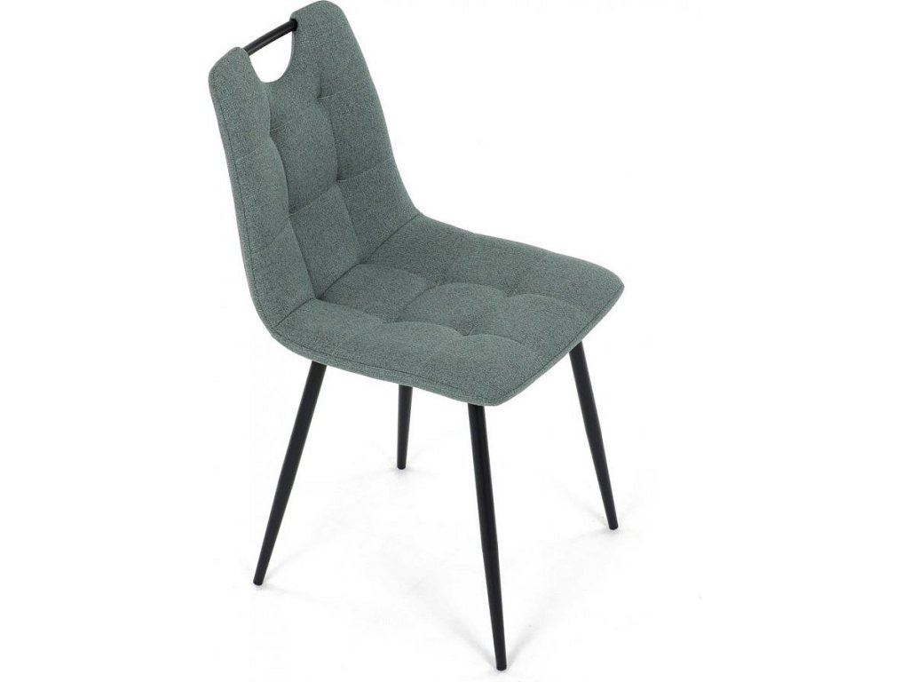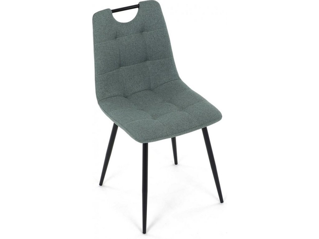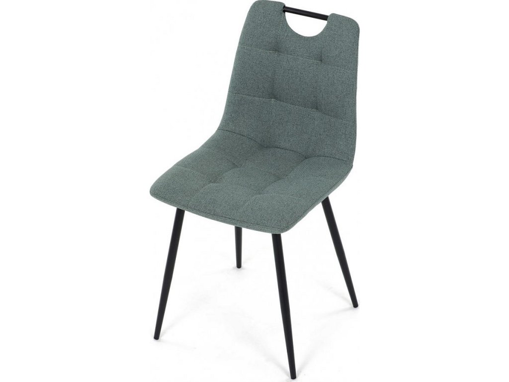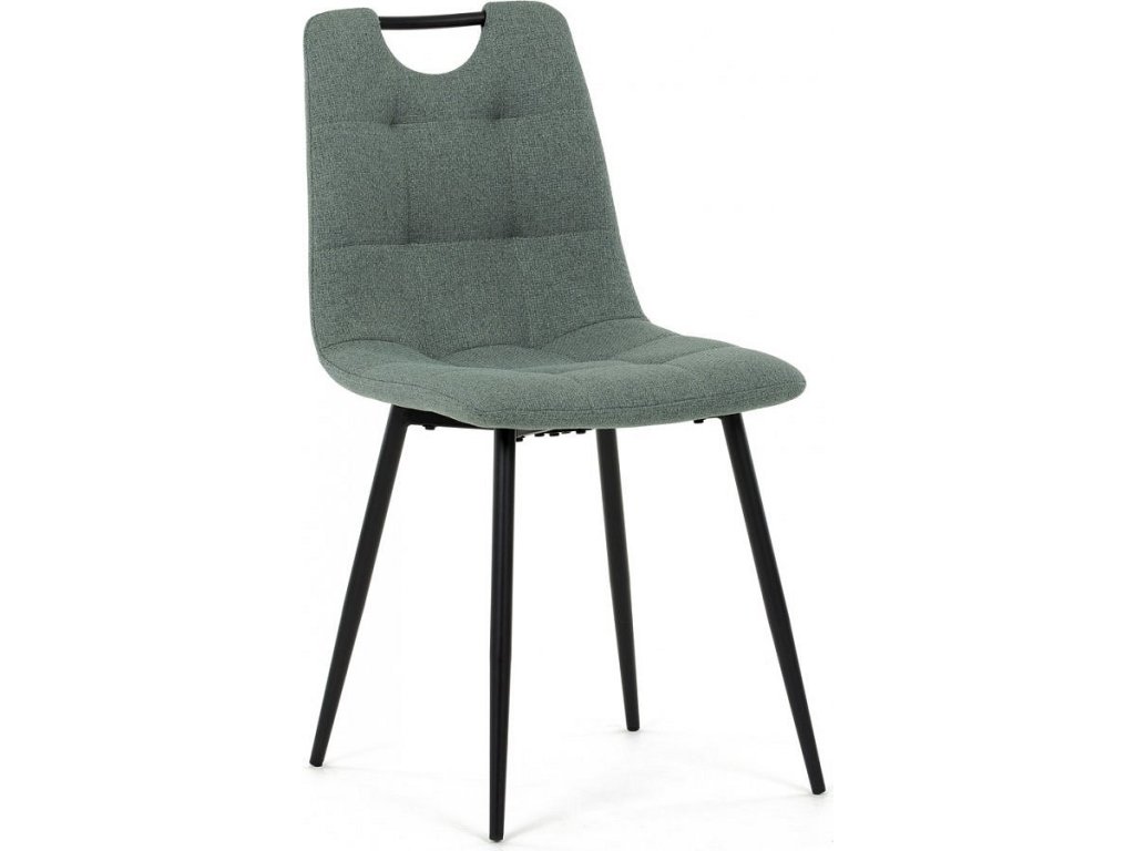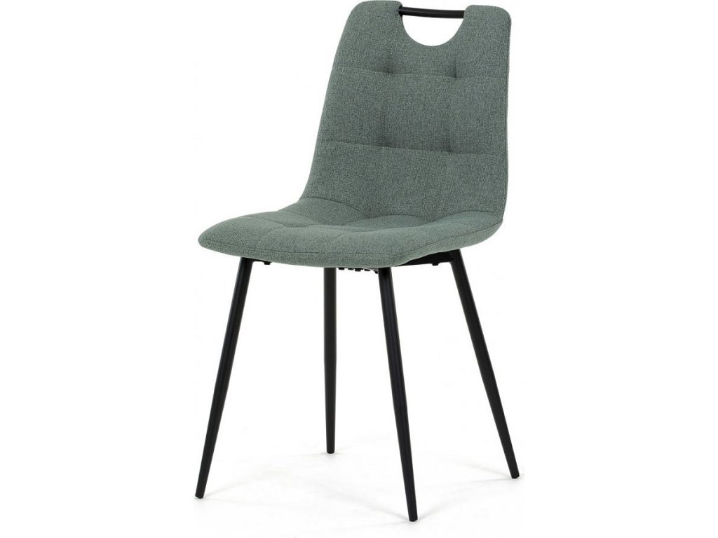 Židle jídelní, madlo, snadno čistitelná zelená látka, černý matný lak, kovové nohy DCL-V2017 GRN2