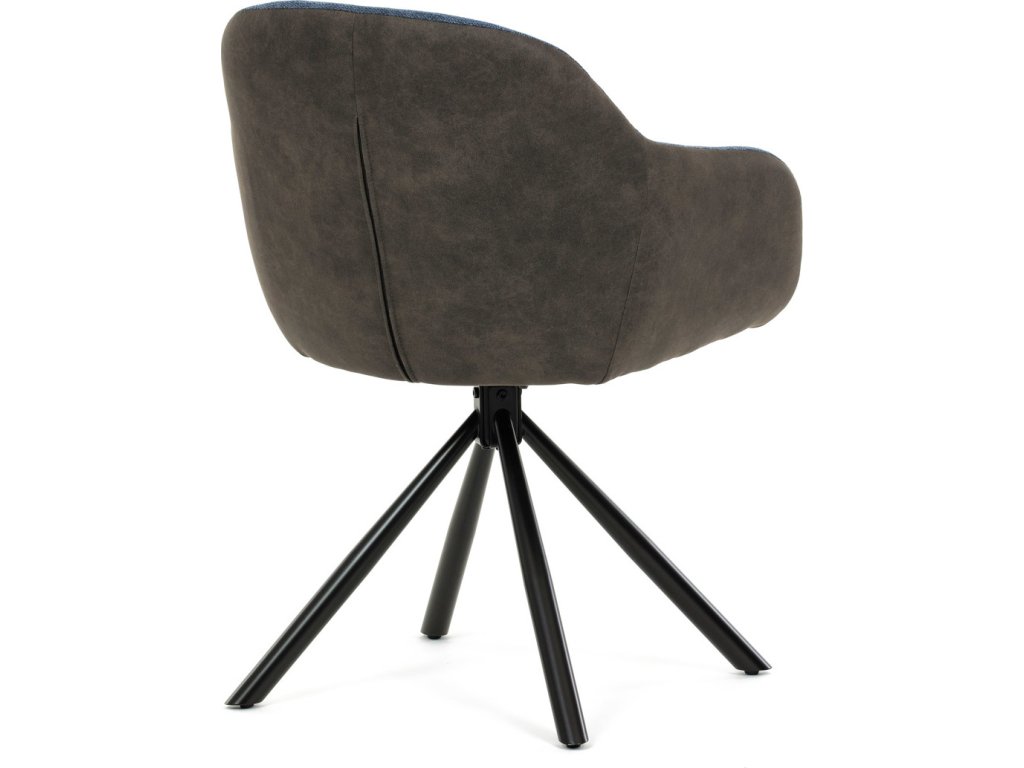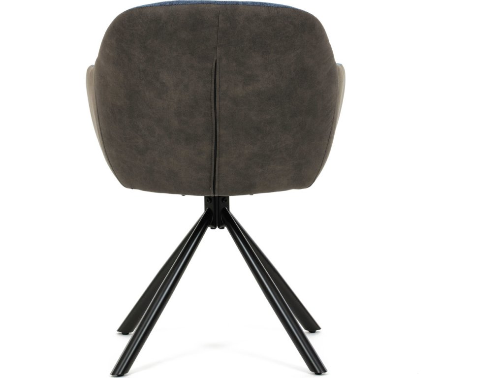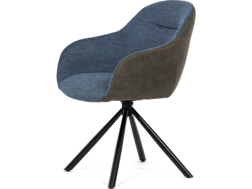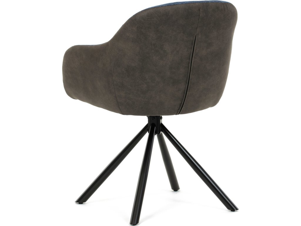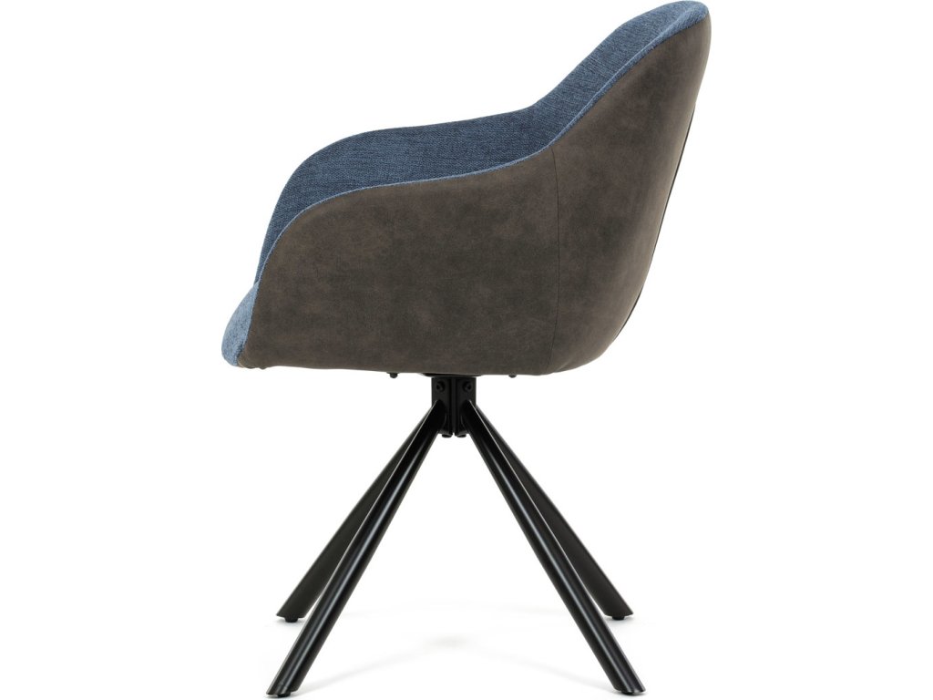 Židle jídelní, modrá látka a tmavě šedá látka v dekoru vintage kůže, černý kov, otočná P90°+ L90° s vratným mechanismem DCH-Y1143 BLUE2