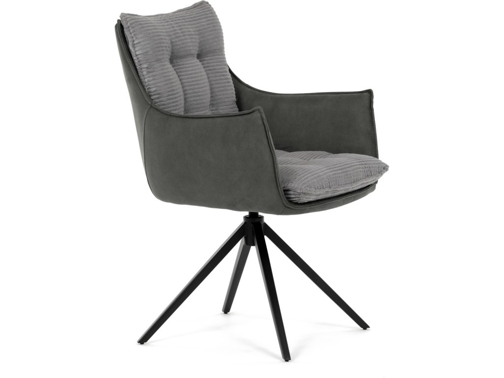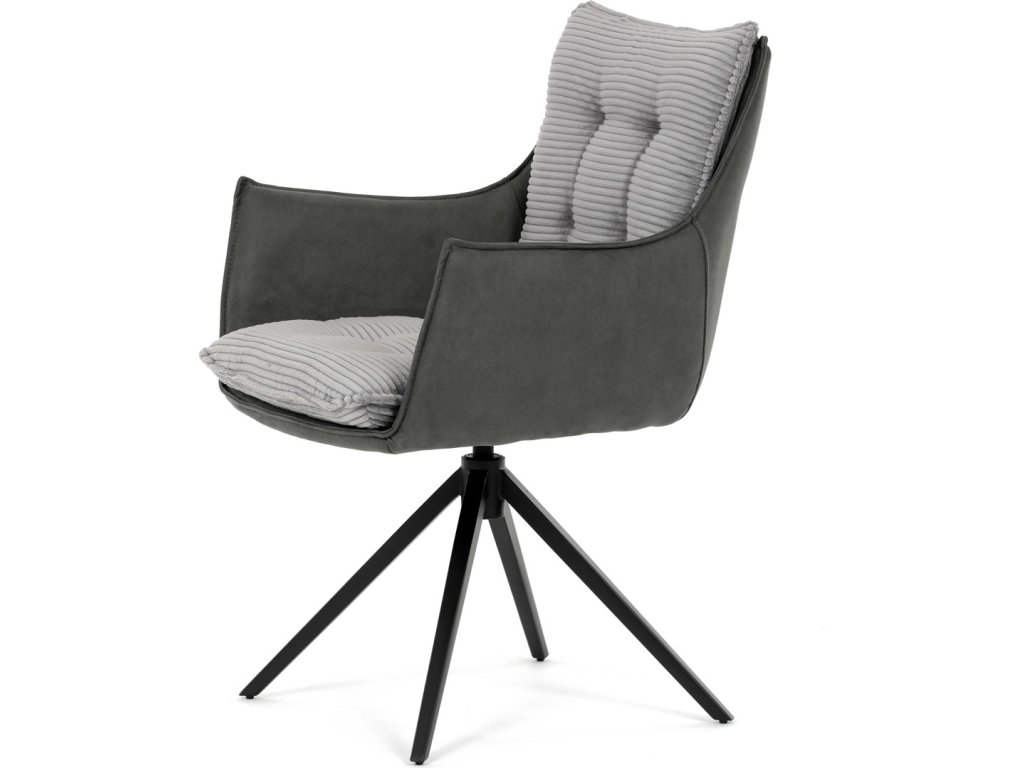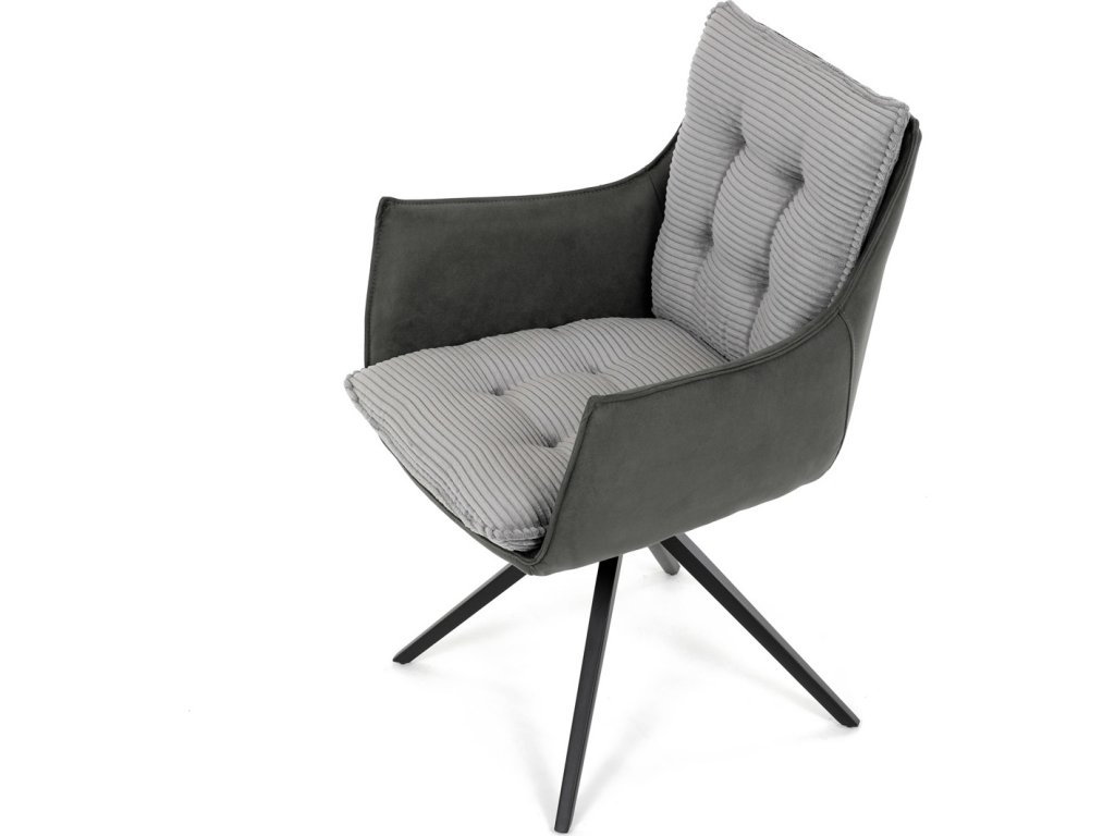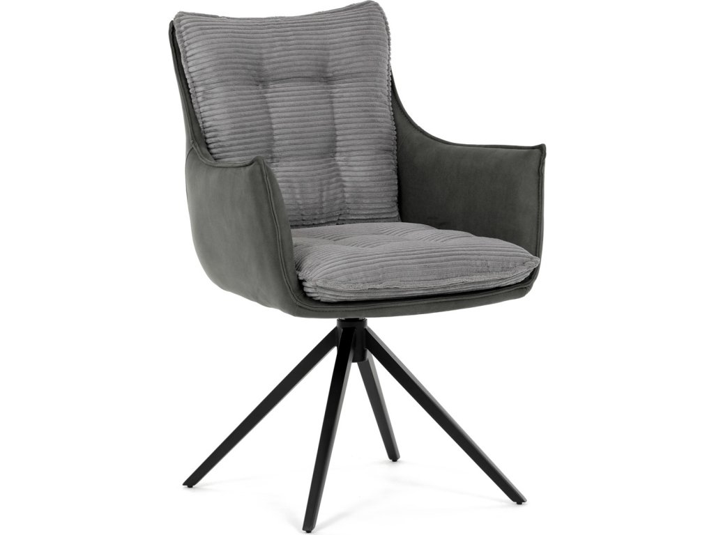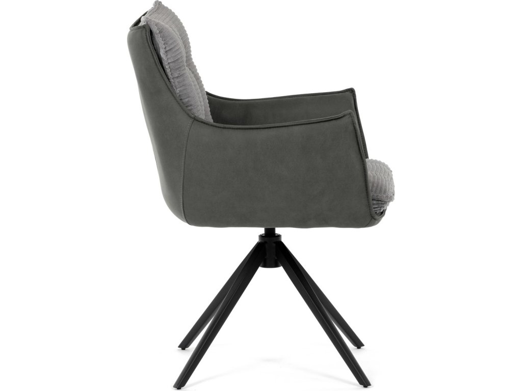 Jídelní židle DCH-D1345 GREY2 značky Autronic vyniká otočným 360° vratným mechanismem, který zajišťuje plynulý a tichý návrat do výchozí polohy, což přispívá k pohodlí a praktičnosti při používání. Konstrukce židle kombinuje pevný černý kovový rám s moderním designem čtyřnohé podnože, která zaručuje stabilitu a dlouhou životnost. Sedák a opěradlo jsou potaženy kombinací dvou typů šedé látky, přičemž vnitřní část tvoří měkký, žebrovaný textil s vysokým polstrováním, které poskytuje ergonomickou podporu a komfort i při delším sezení. Čalounění je pečlivě prošité a tvarované tak, aby zvýraznilo estetiku a zároveň zajistilo dostatečnou prodyšnost materiálu. Područky jsou integrovány do celkové konstrukce sedáku, což zvyšuje komfort bez omezení pohybu. Díky kombinaci kvalitních materiálů a funkčních prvků je židle vhodná pro moderní jídelny i pracovní prostory, kde je kladen důraz na design i uživatelský komfort.