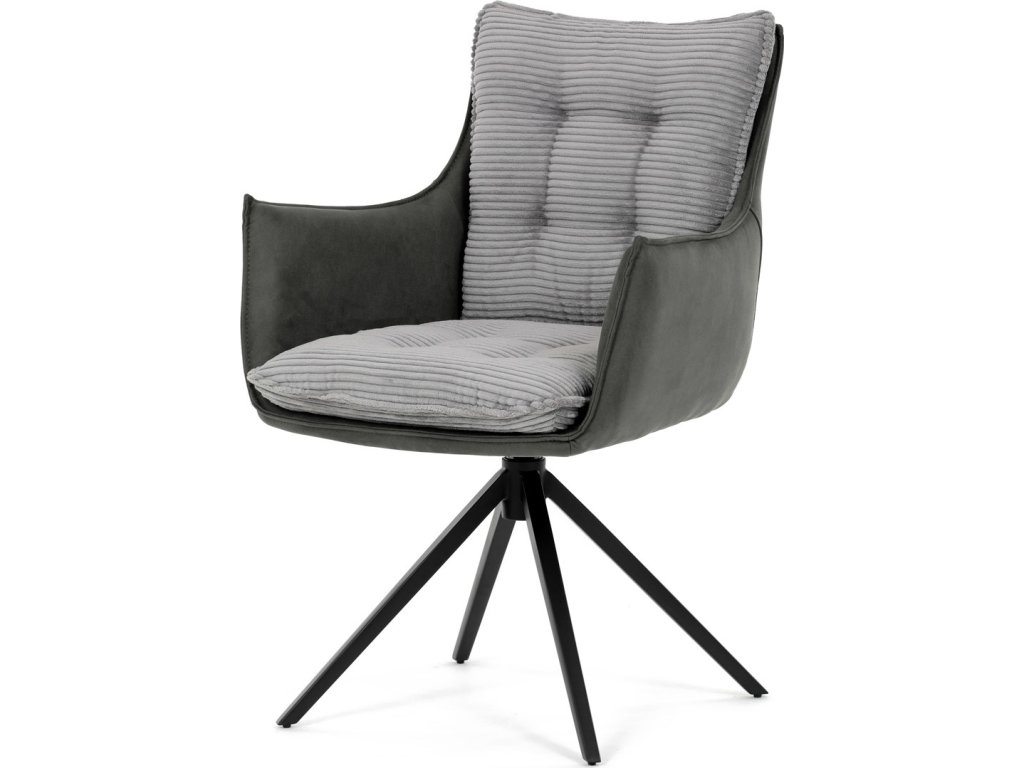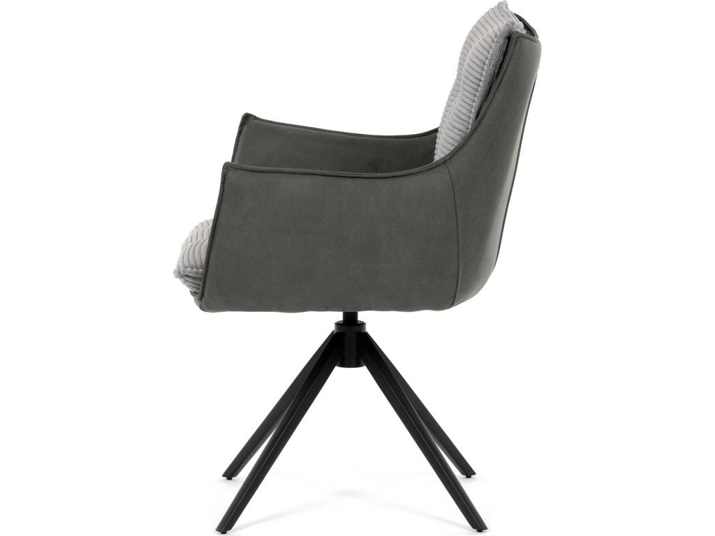 Židle jídelní, šedá látka, 360° vratný mechanismus, černý kov DCH-D1345 GREY2