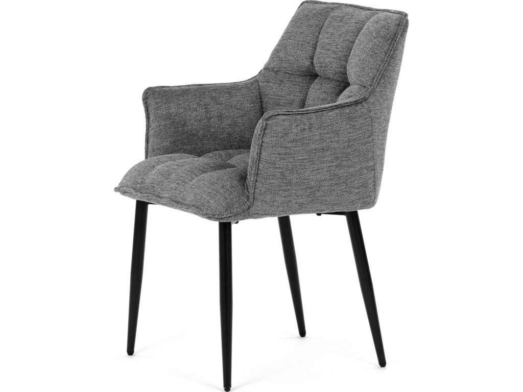 Stylová jídelní židle značky Autronic kombinuje moderní design s vysokou funkčností. Elegantní šedé čalounění z vodoodpudivé látky zajišťuje snadnou údržbu a odolnost proti nečistotám, což oceníte v každodenním provozu. Pohodlí při sezení zaručuje měkká PU pěna a integrované područky, které podporují správnou ergonomii. Stabilitu zajišťují čtyři kovové nohy v černém provedení, které podtrhují moderní vzhled. Tato židle skvěle doplní jakýkoliv jídelní prostor a přinese do něj sofistikovaný styl a pohodlí.