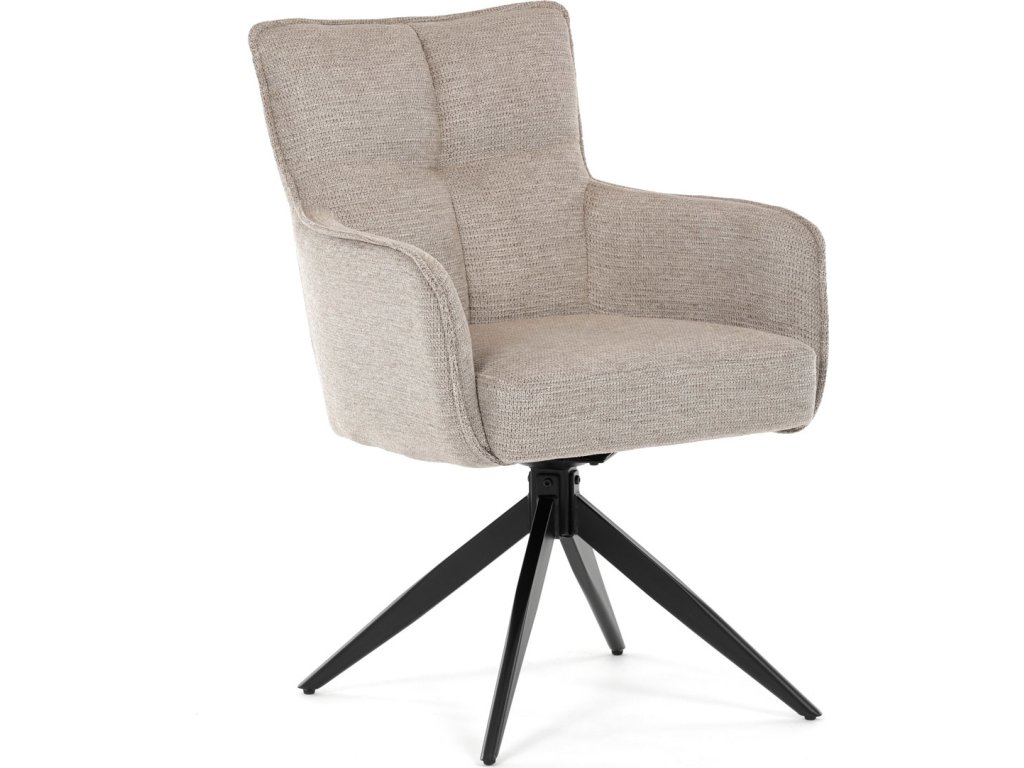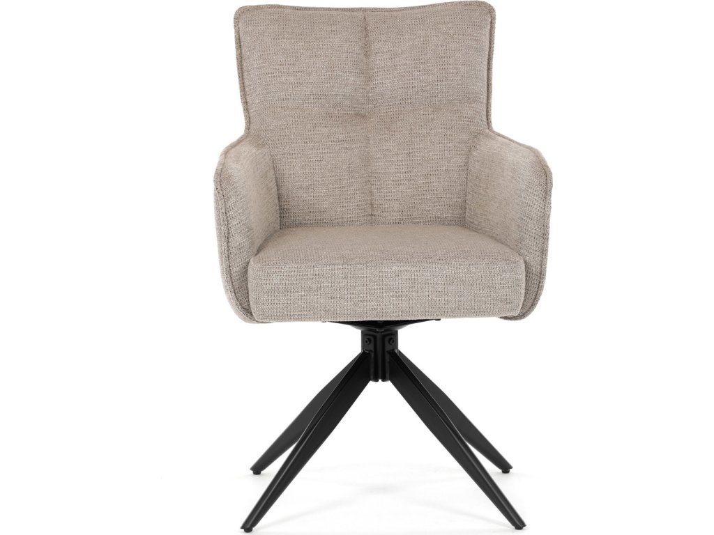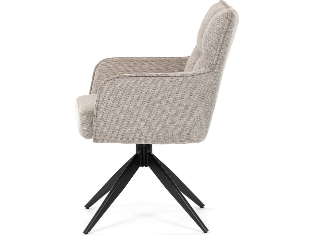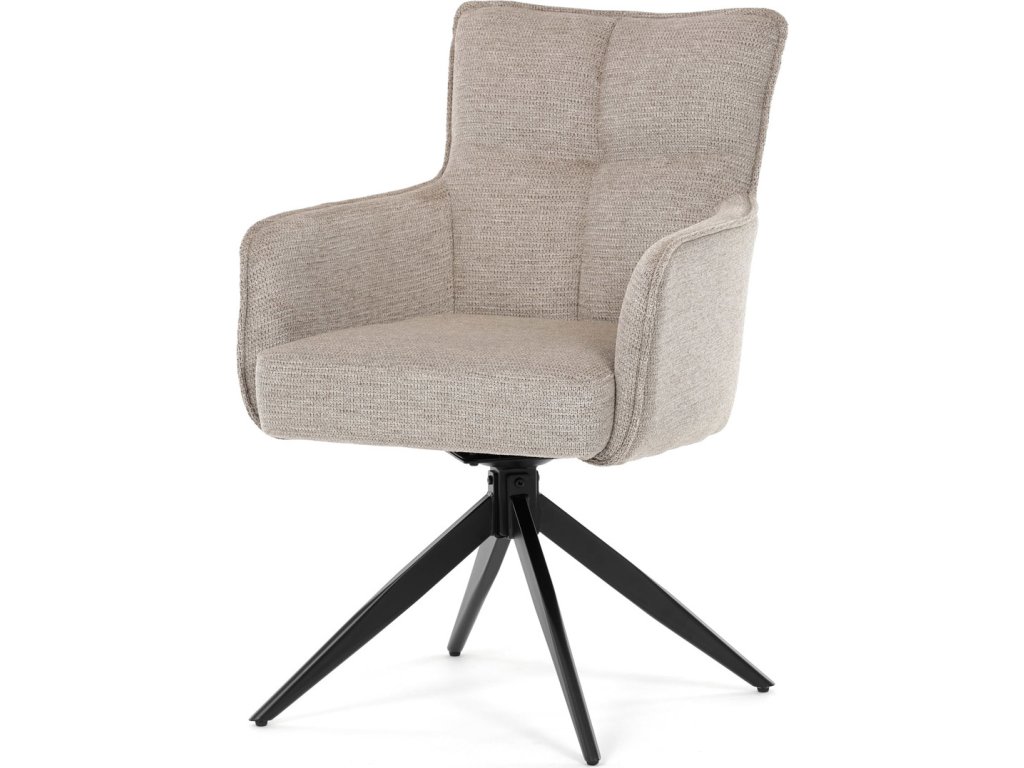 Elegantní otočná jídelní židle značky Autronic přináší do vaší jídelny pohodlí i styl. Béžový potah z voděodolné látky zaručuje snadnou údržbu a dlouhou životnost. Sedák je vybaven taštičkovými pružinami, které zajišťují maximální komfort při sezení. Stabilní centrální kovová podnož v černé barvě podtrhuje moderní design a dodává židli jedinečný vzhled. Díky otočnému mechanismu s vratnou funkcí je židle praktická a flexibilní. Ideální volba pro moderní interiéry, které kladou důraz na funkčnost a estetiku.