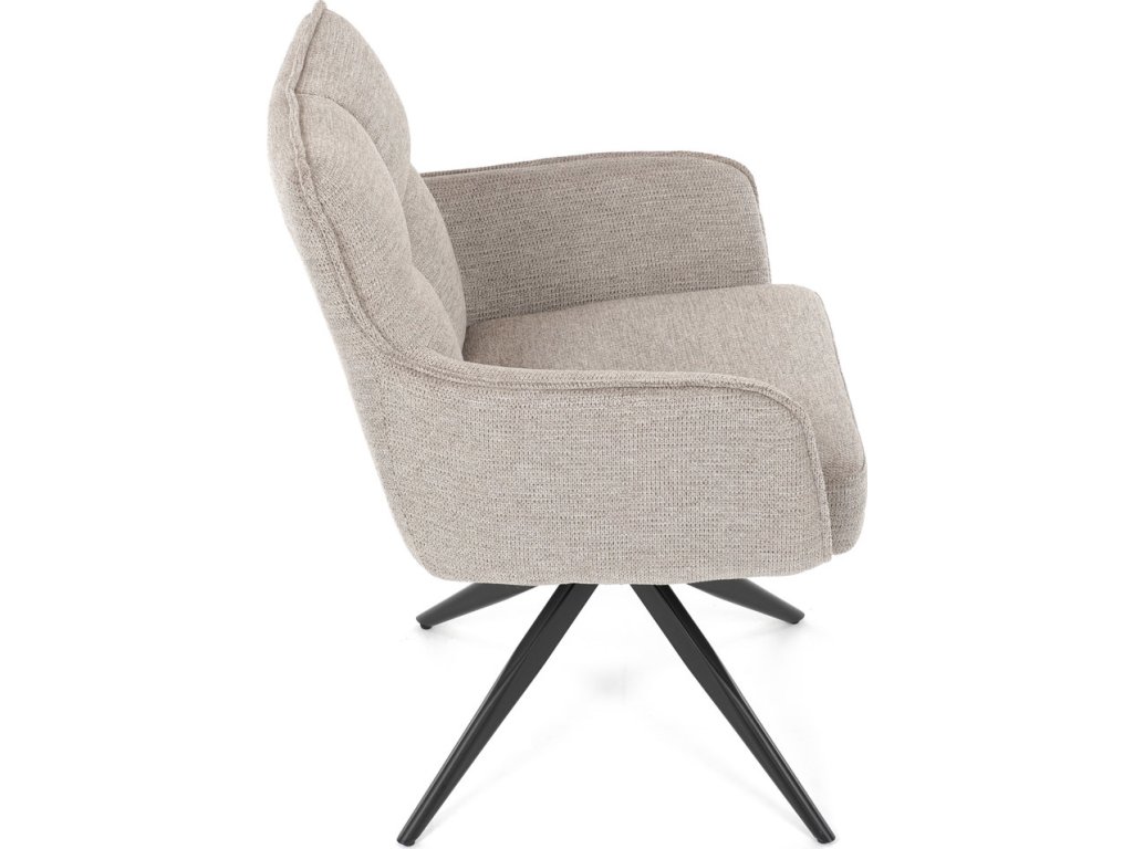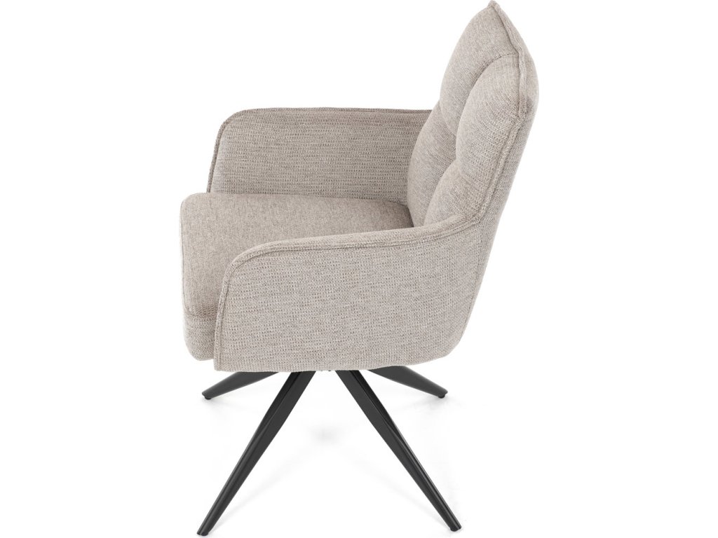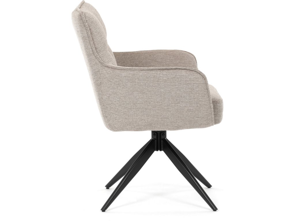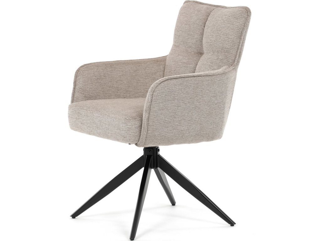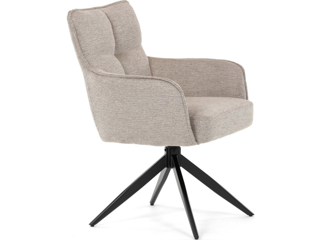 Elegantní otočná jídelní židle značky Autronic přináší do vaší jídelny pohodlí i styl. Béžový potah z voděodolné látky zaručuje snadnou údržbu a dlouhou životnost. Sedák je vybaven taštičkovými pružinami, které zajišťují maximální komfort při sezení. Stabilní centrální kovová podnož v černé barvě podtrhuje moderní design a dodává židli jedinečný vzhled. Díky otočnému mechanismu s vratnou funkcí je židle praktická a flexibilní. Ideální volba pro moderní interiéry, které kladou důraz na funkčnost a estetiku.