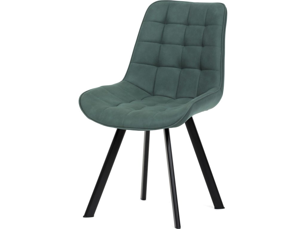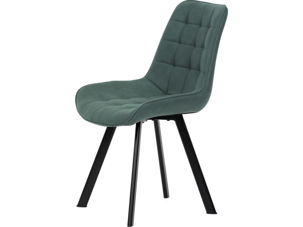 Židle jídelní, zelená látka v dekoru broušené kůže, černý kov HC-V3066 GRN3