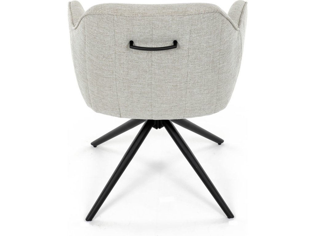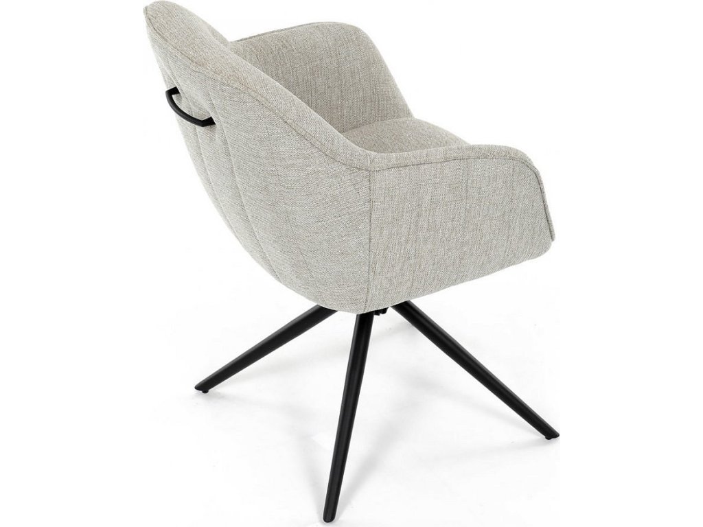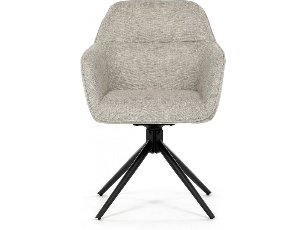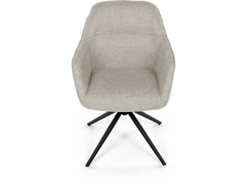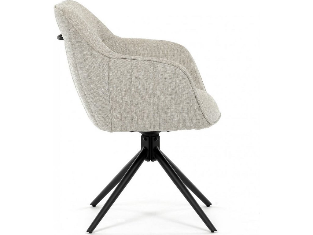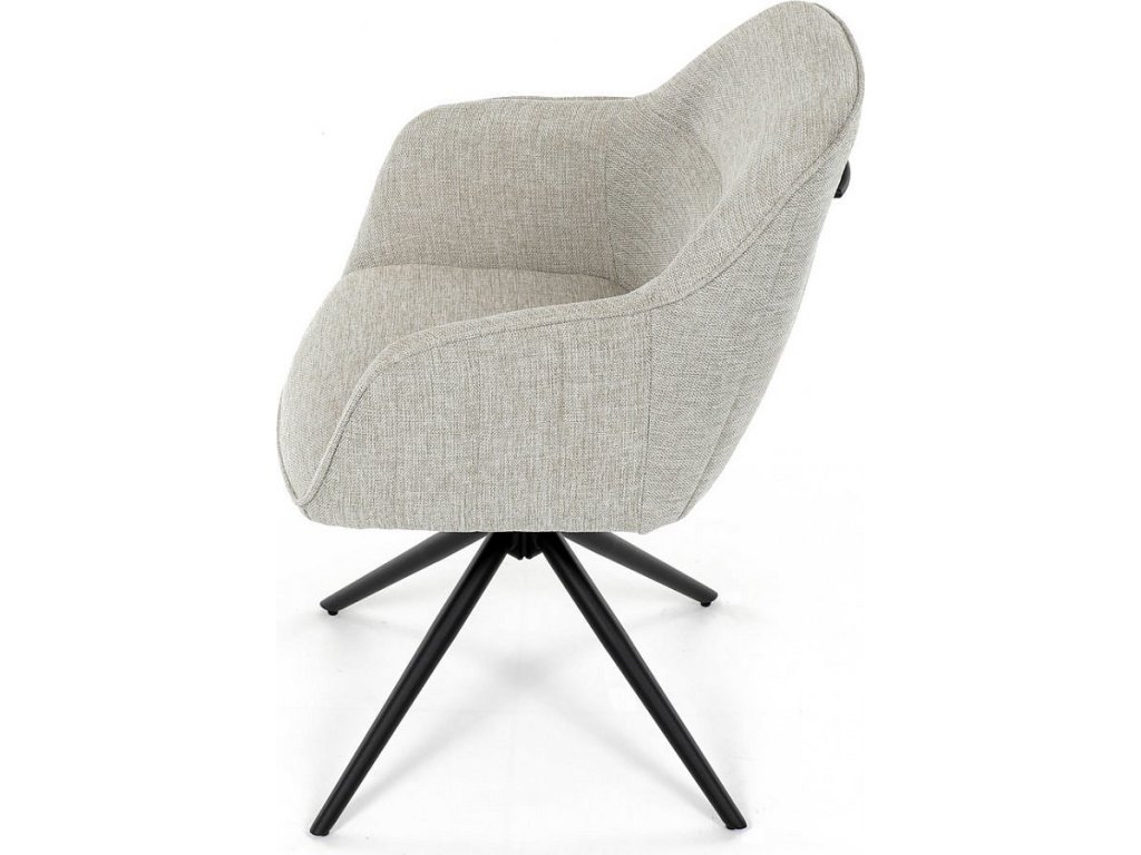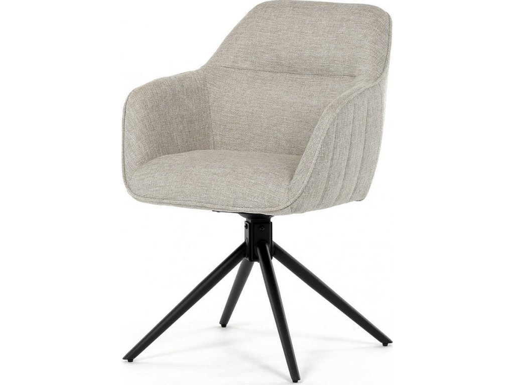 Moderní jídelní židle v krémové barvě s efektním prošitím zádové i přední části opěráku. Prošití je v brvě potahového materiálu. Zadní část opěráku je opatřena vkusným madlem pro snazší manipulaci. Čtyři kovové nohy v matném práškovém nástřiku vycházejí z centrálního bodu ve středu sedáku. Sedák je otočný o P90°+ L 90° s vratným mechanismem - funkce reset.