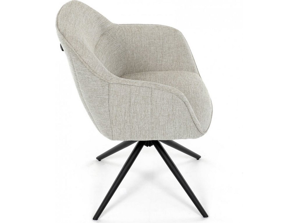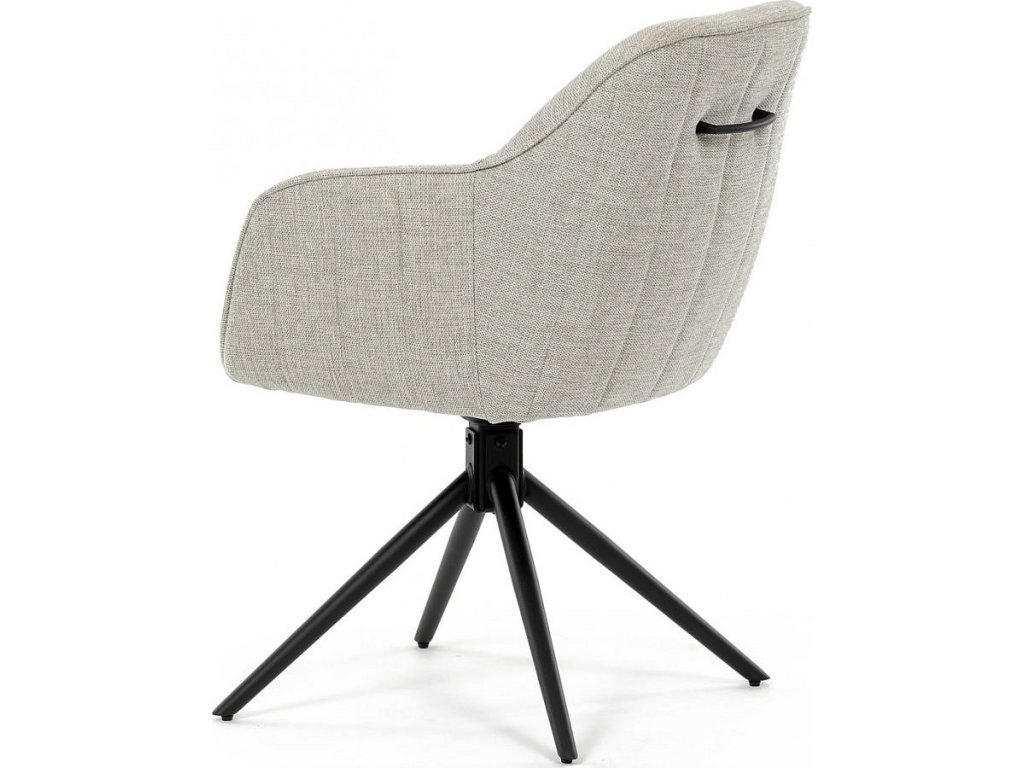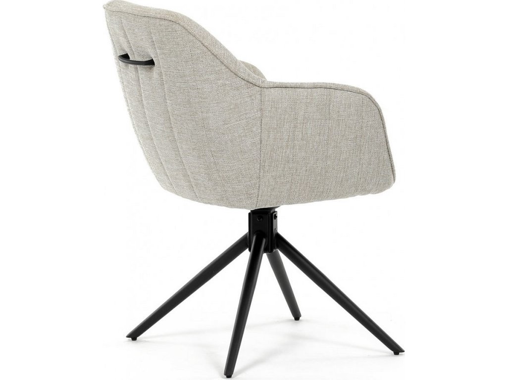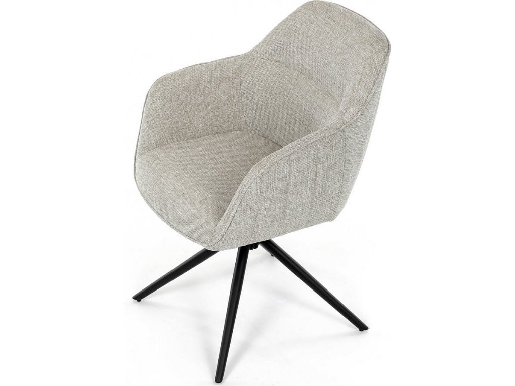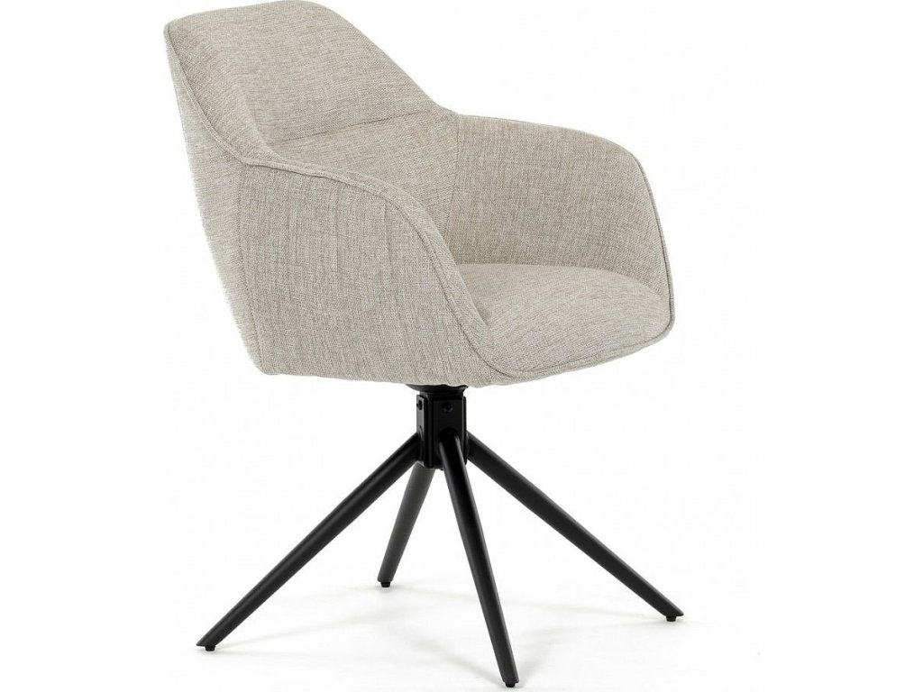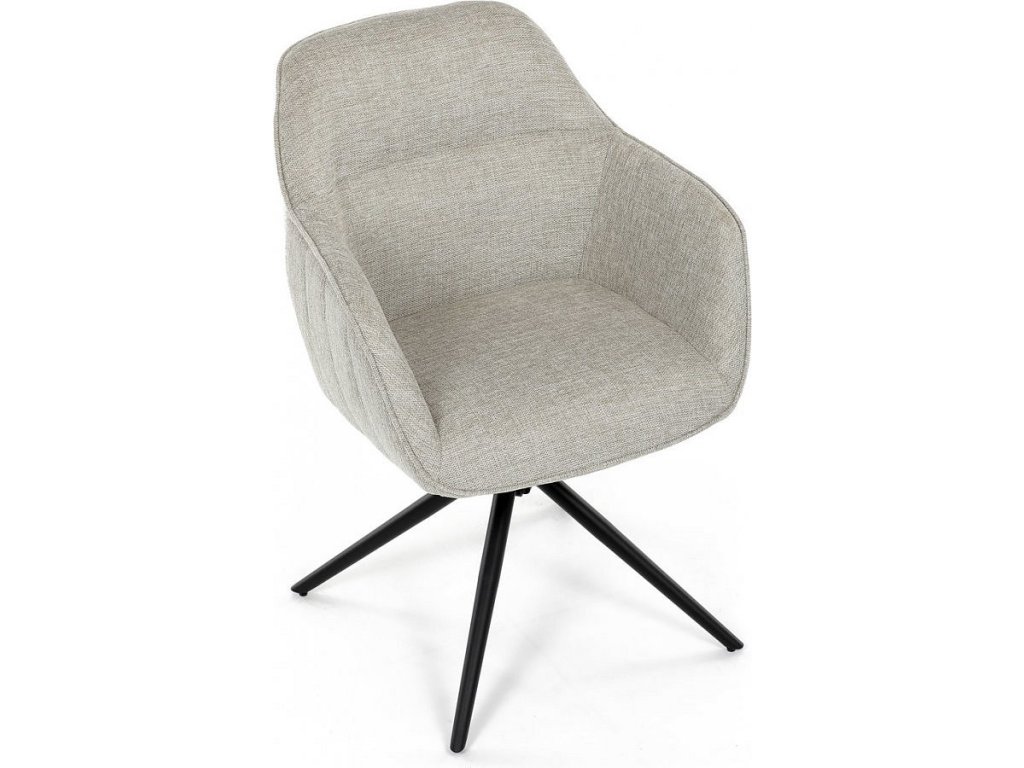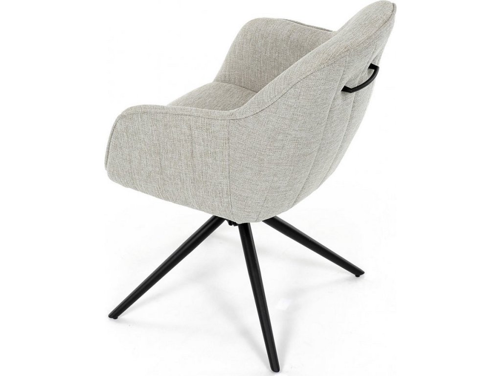 Moderní jídelní židle v krémové barvě s efektním prošitím zádové i přední části opěráku. Prošití je v brvě potahového materiálu. Zadní část opěráku je opatřena vkusným madlem pro snazší manipulaci. Čtyři kovové nohy v matném práškovém nástřiku vycházejí z centrálního bodu ve středu sedáku. Sedák je otočný o P90°+ L 90° s vratným mechanismem - funkce reset.