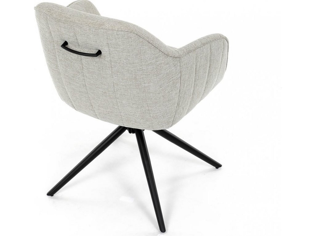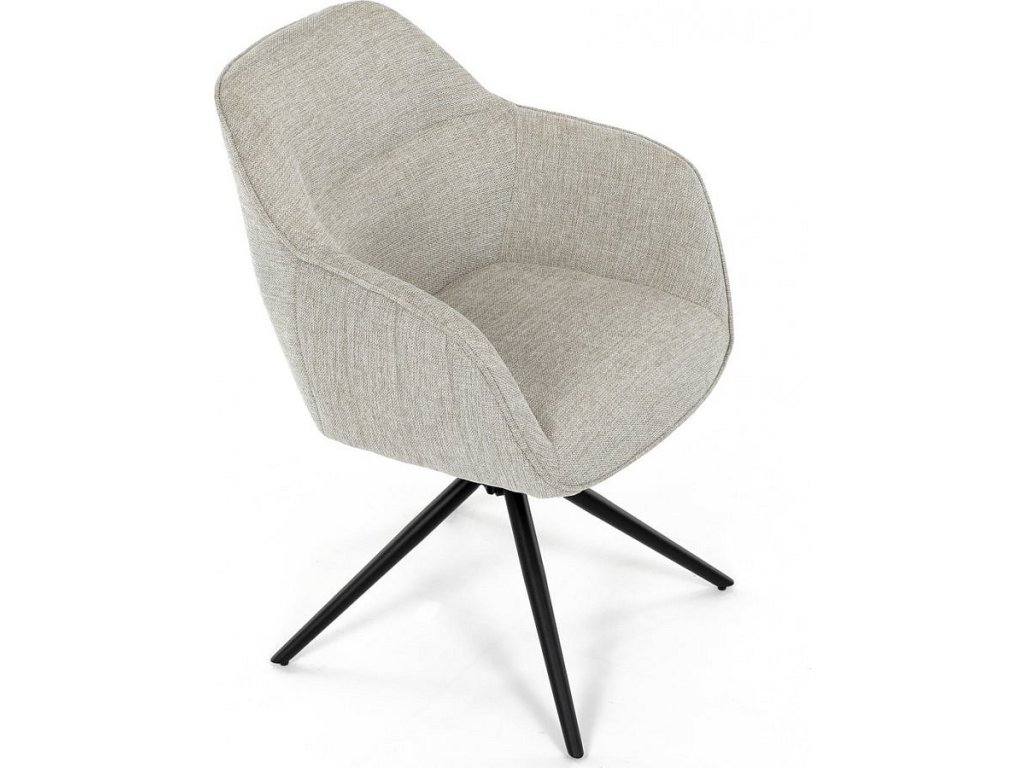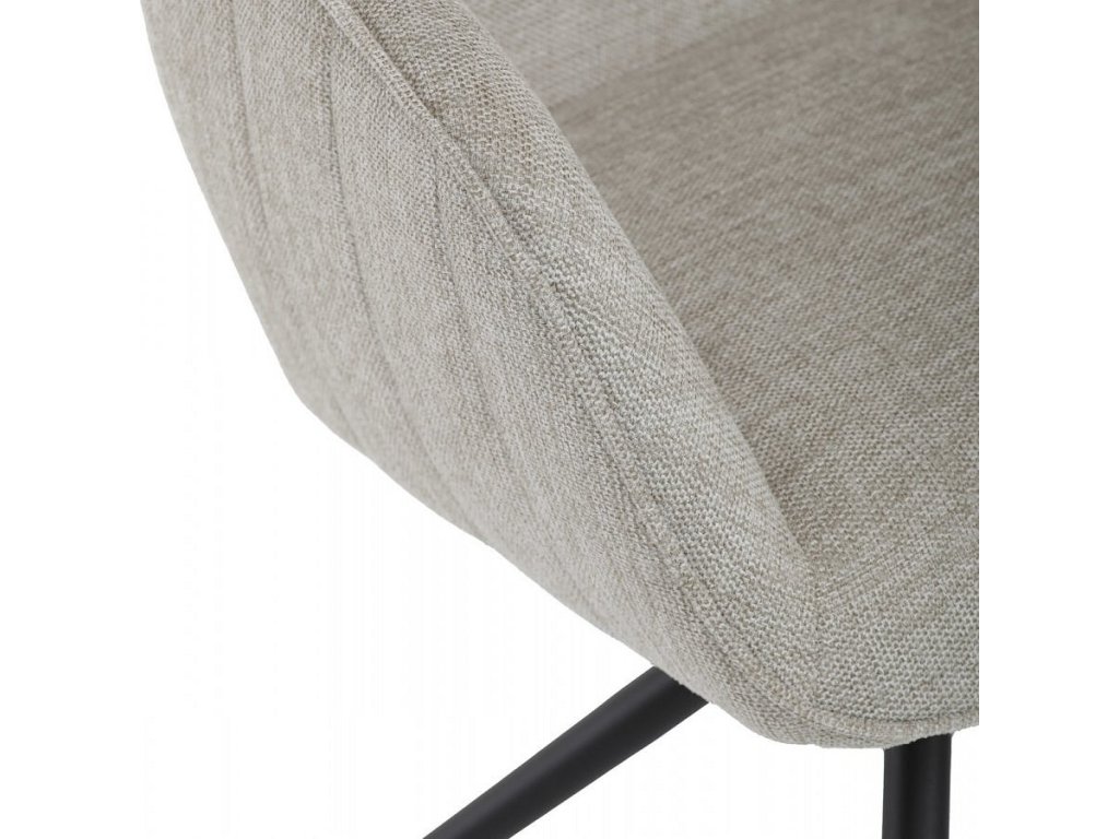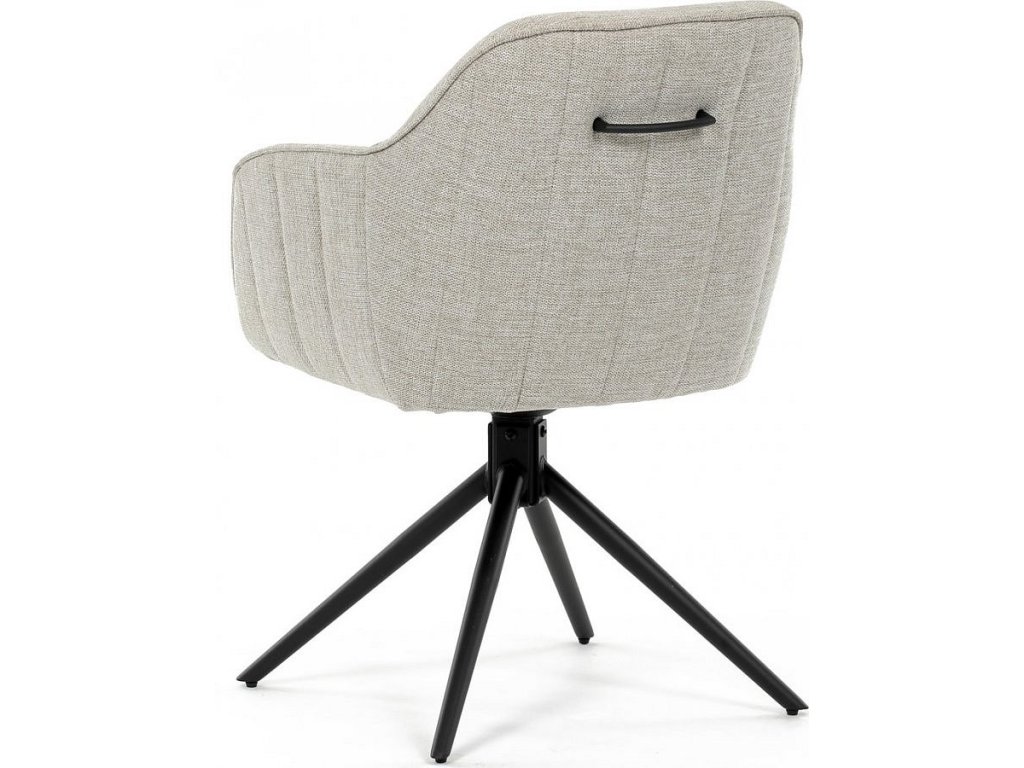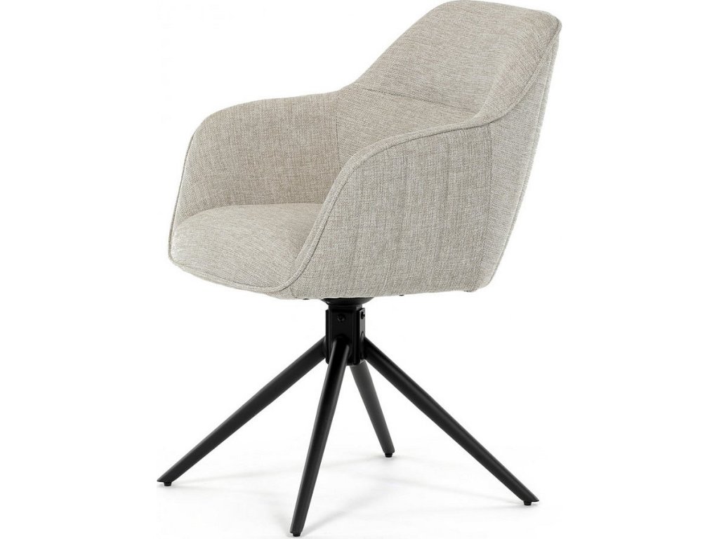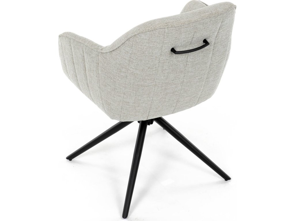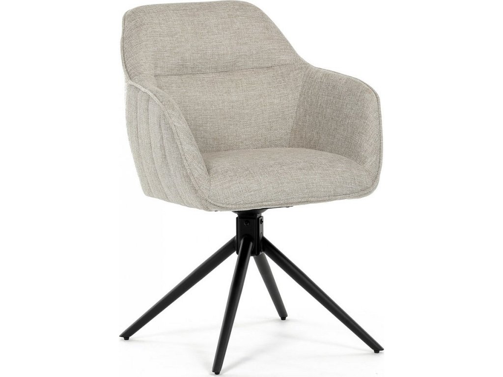 Moderní jídelní židle v krémové barvě s efektním prošitím zádové i přední části opěráku. Prošití je v brvě potahového materiálu. Zadní část opěráku je opatřena vkusným madlem pro snazší manipulaci. Čtyři kovové nohy v matném práškovém nástřiku vycházejí z centrálního bodu ve středu sedáku. Sedák je otočný o P90°+ L 90° s vratným mechanismem - funkce reset.