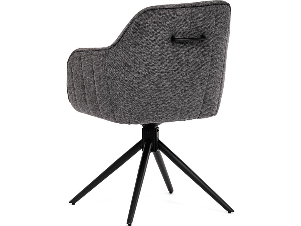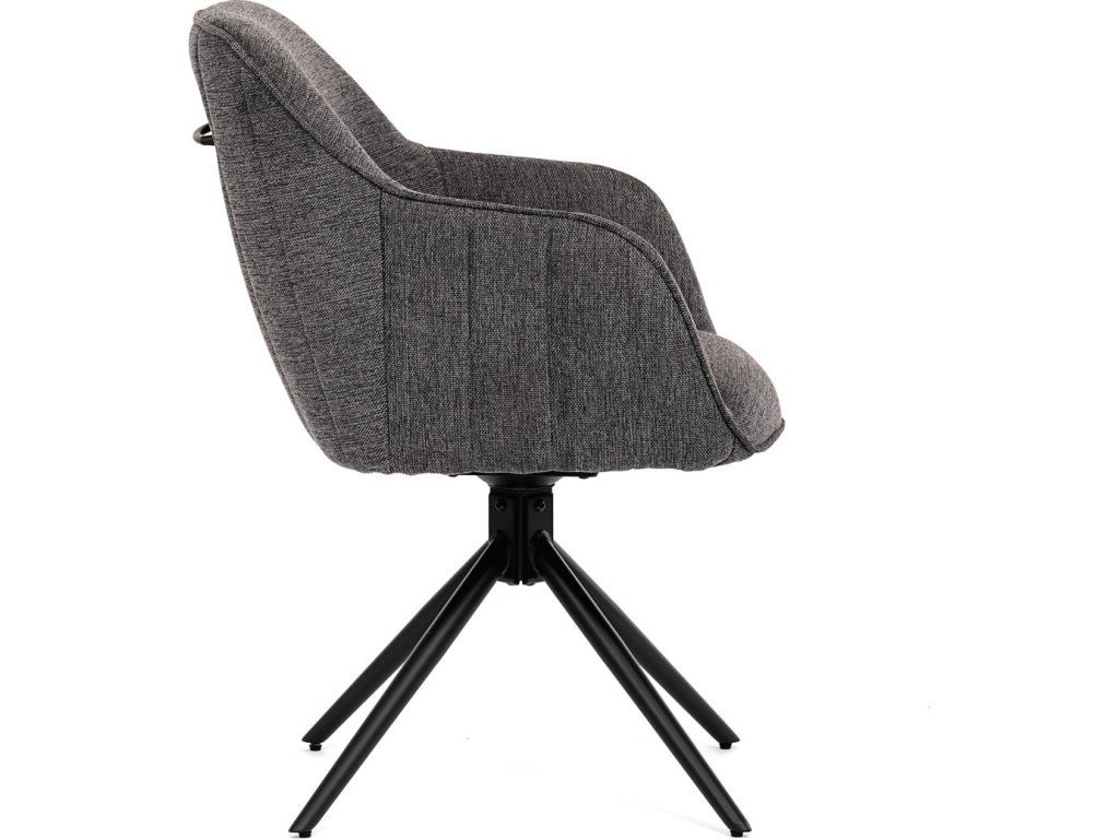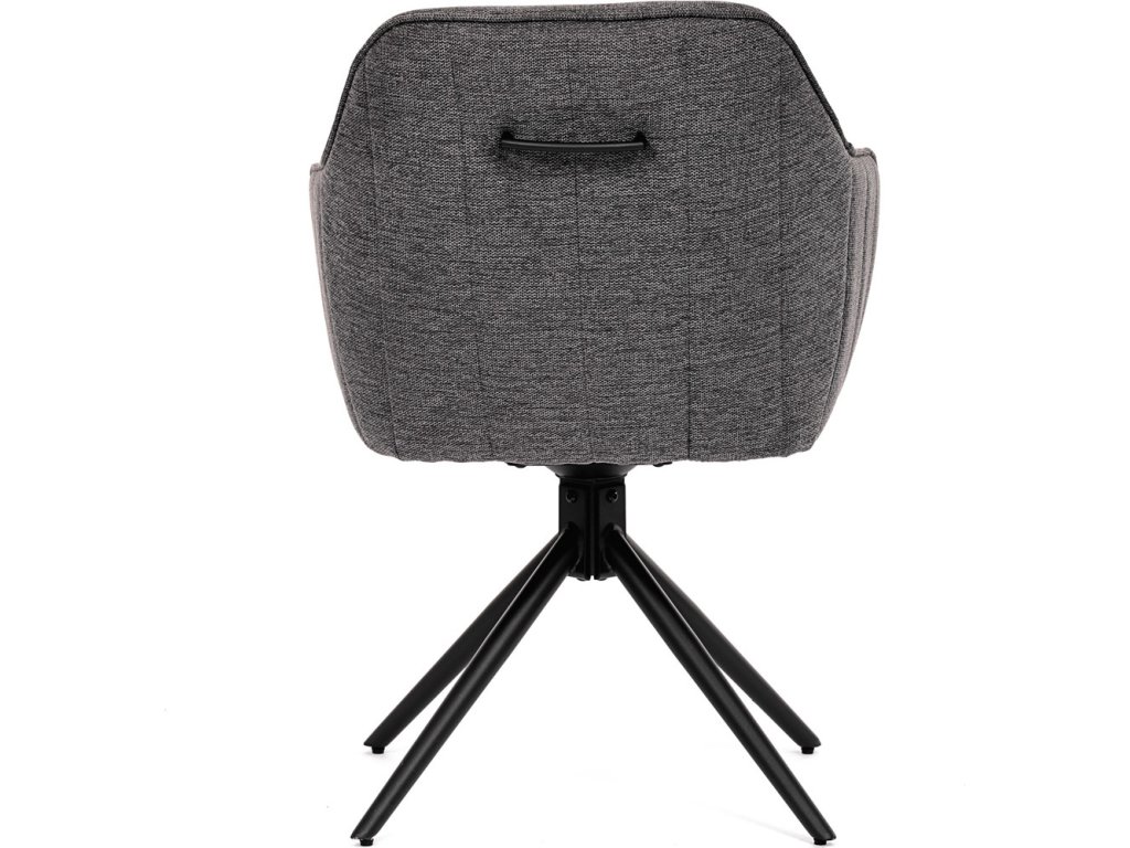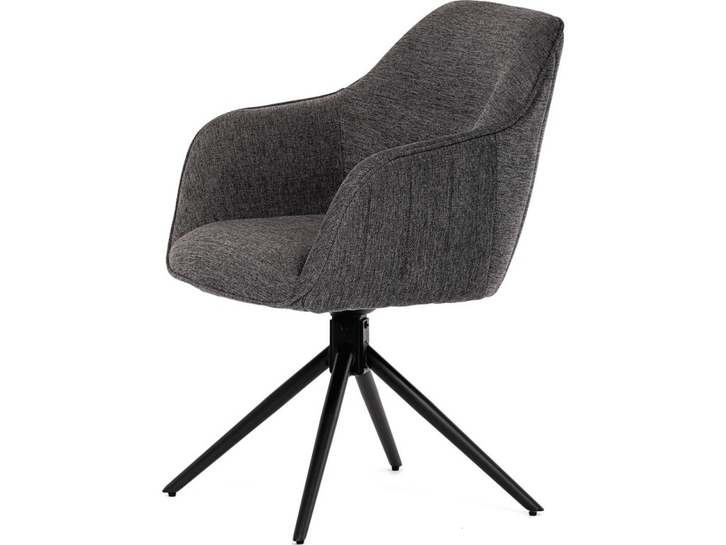 Moderní jídelní židle v šedé barvě s efektním prošitím zádové i přední části opěráku. Prošití je v brvě potahového materiálu. Zadní část opěráku je opatřena vkusným madlem pro snazší manipulaci. Čtyři kovové nohy v matném práškovém nástřiku vycházejí z centrálního bodu ve středu sedáku. Sedák je otočný o P90°+ L 90° s vratným mechanismem - funkce reset.