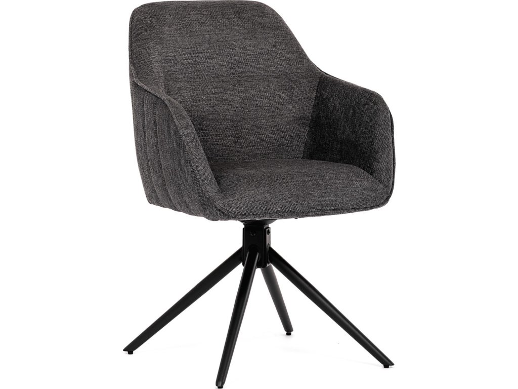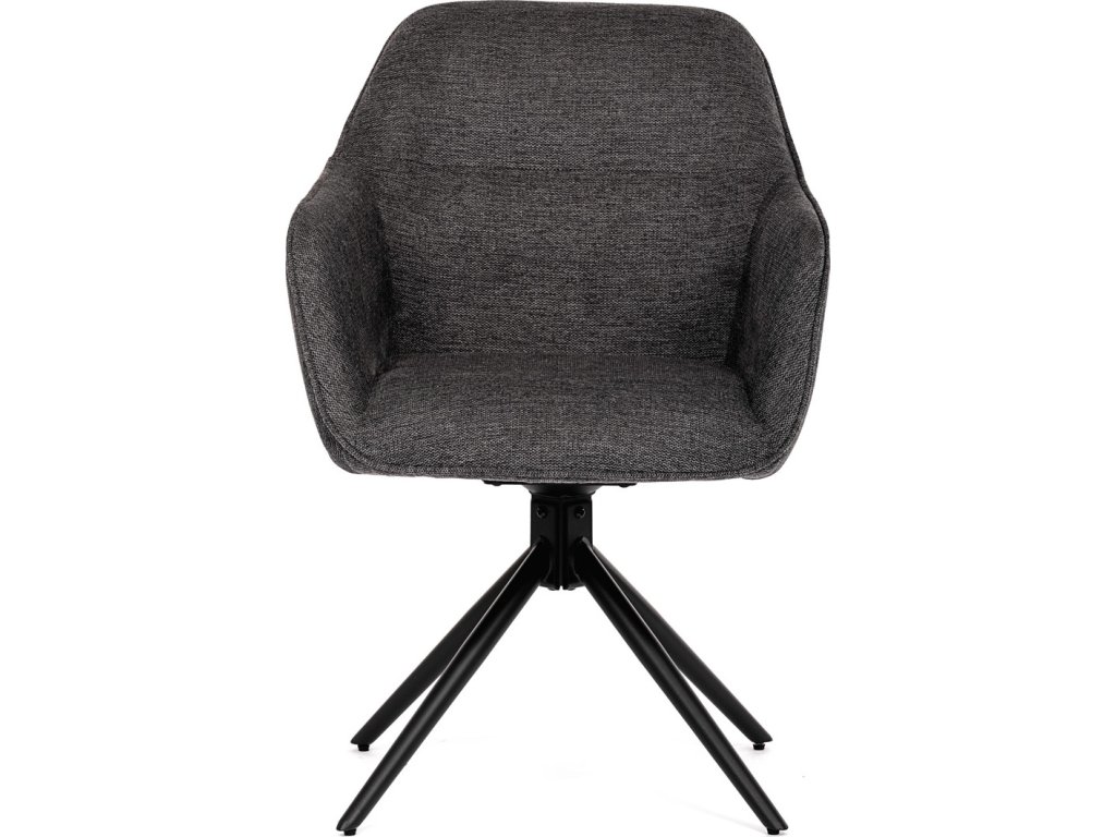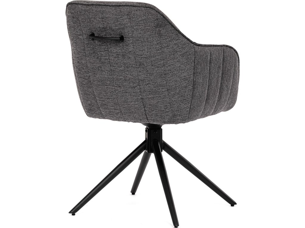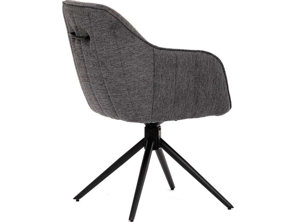 Moderní jídelní židle v šedé barvě s efektním prošitím zádové i přední části opěráku. Prošití je v brvě potahového materiálu. Zadní část opěráku je opatřena vkusným madlem pro snazší manipulaci. Čtyři kovové nohy v matném práškovém nástřiku vycházejí z centrálního bodu ve středu sedáku. Sedák je otočný o P90°+ L 90° s vratným mechanismem - funkce reset.