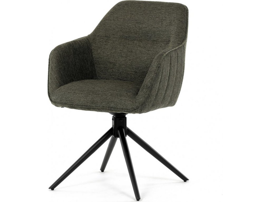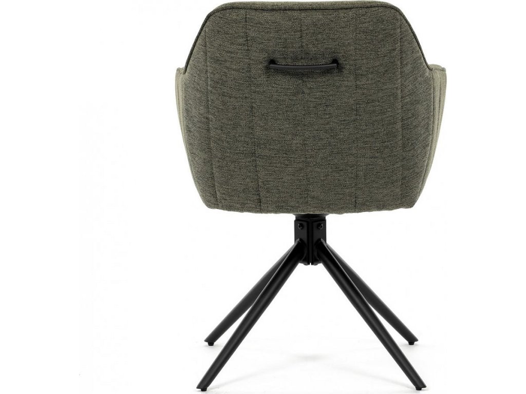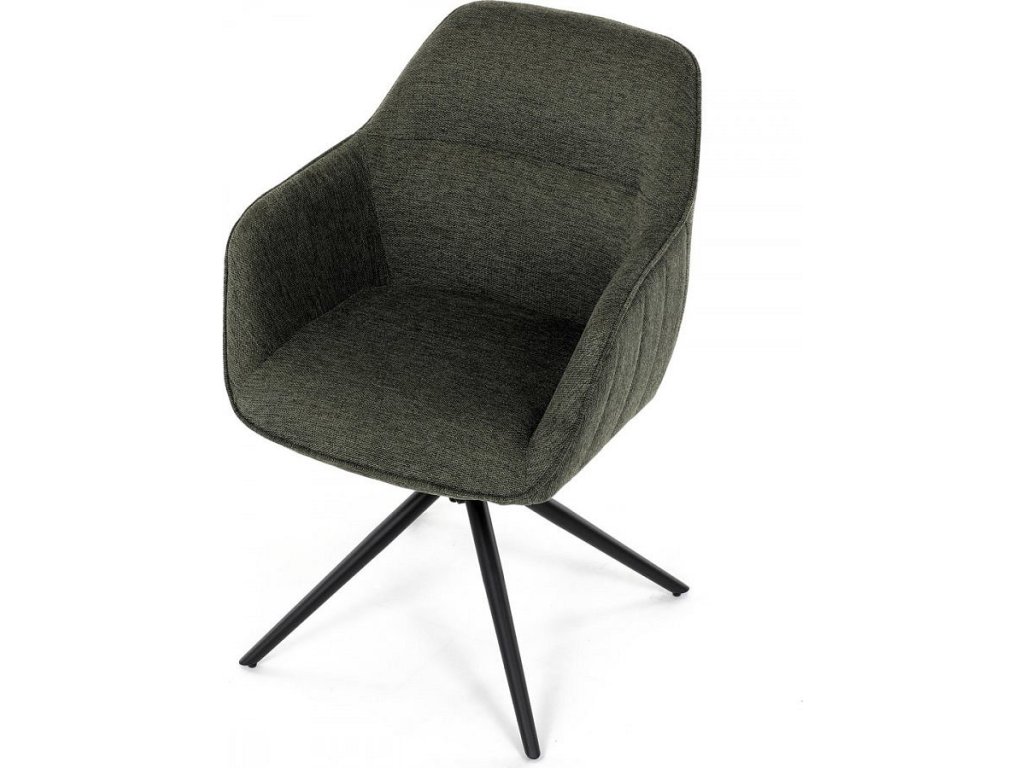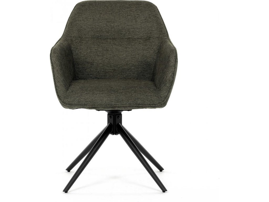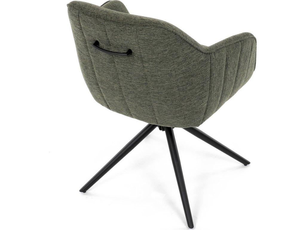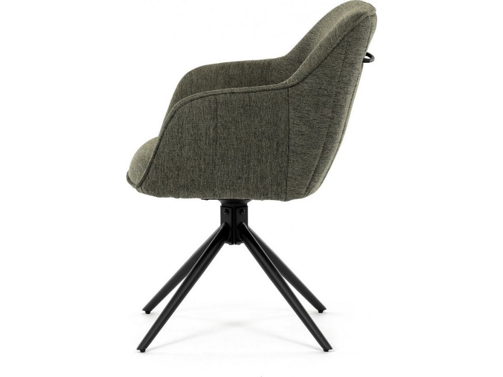 Moderní jídelní židle v zelené barvě s efektním prošitím zádové i přední části opěráku. Prošití je v brvě potahového materiálu. Zadní část opěráku je opatřena vkusným madlem pro snazší manipulaci. Čtyři kovové nohy v matném práškovém nástřiku vycházejí z centrálního bodu ve středu sedáku. Sedák je otočný o P90°+ L 90° s vratným mechanismem - funkce reset.