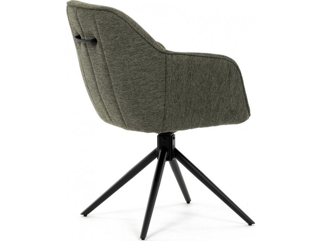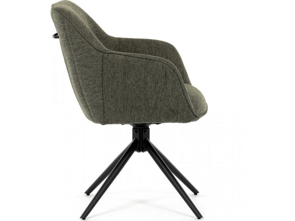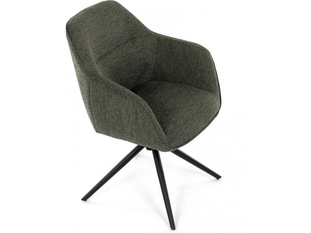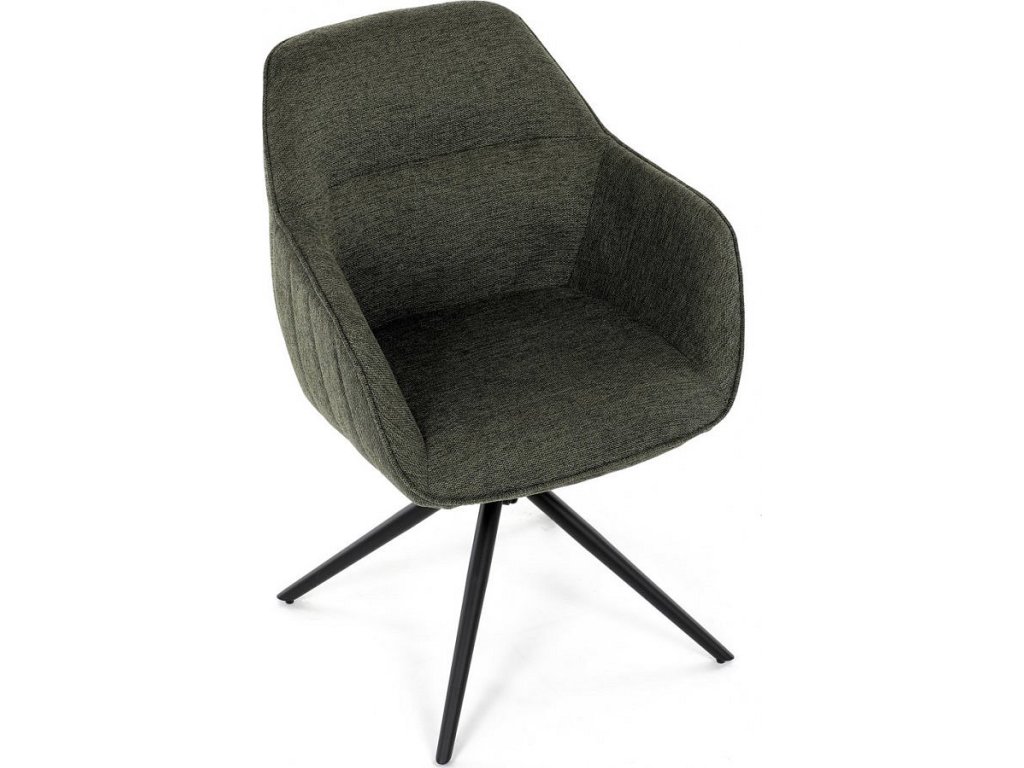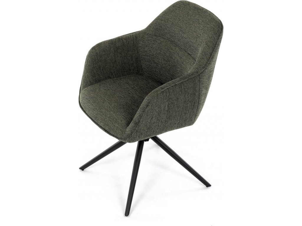 Moderní jídelní židle v zelené barvě s efektním prošitím zádové i přední části opěráku. Prošití je v brvě potahového materiálu. Zadní část opěráku je opatřena vkusným madlem pro snazší manipulaci. Čtyři kovové nohy v matném práškovém nástřiku vycházejí z centrálního bodu ve středu sedáku. Sedák je otočný o P90°+ L 90° s vratným mechanismem - funkce reset.