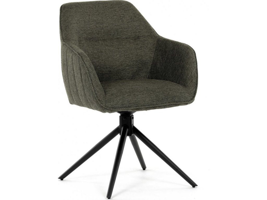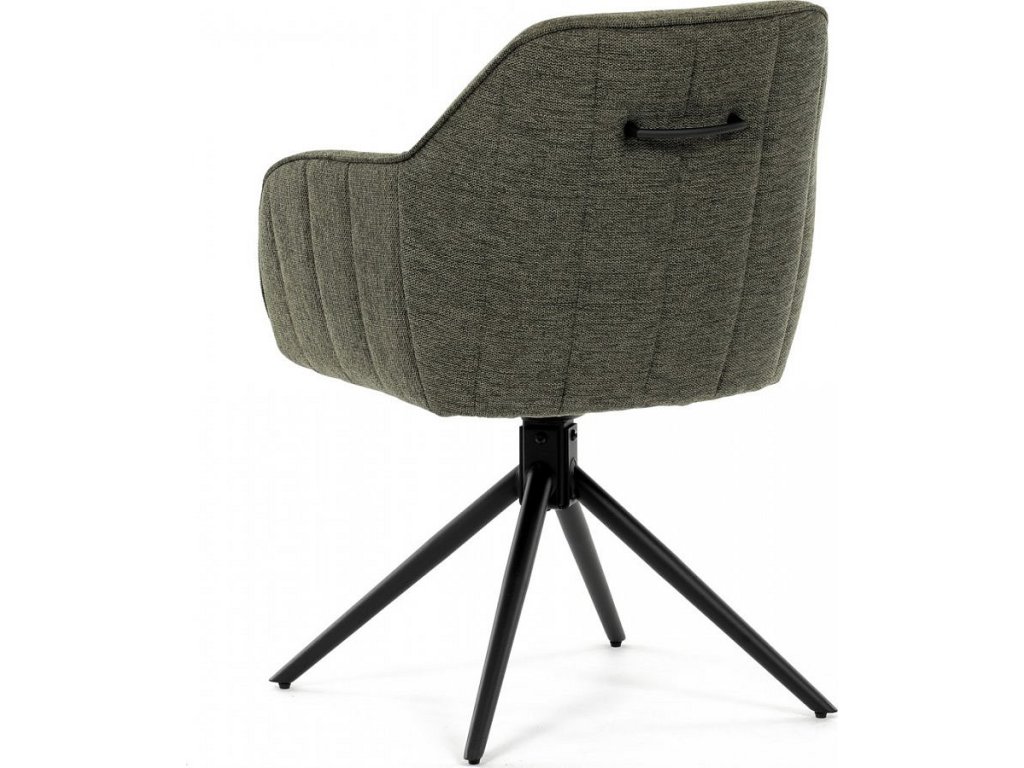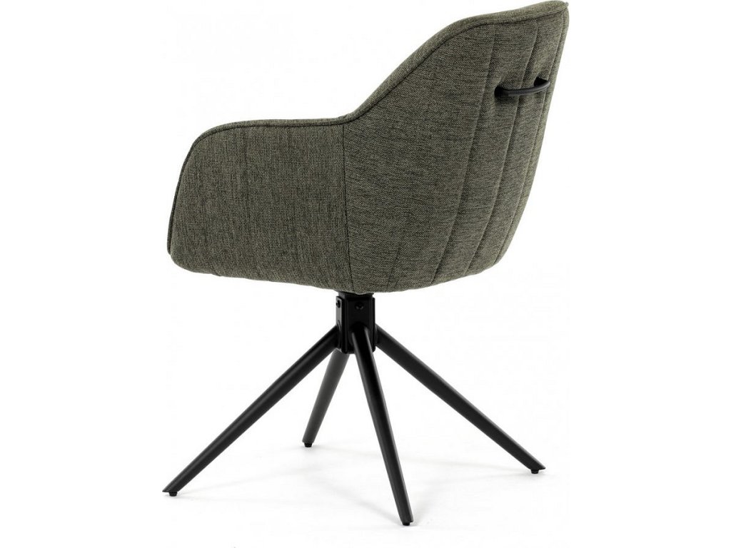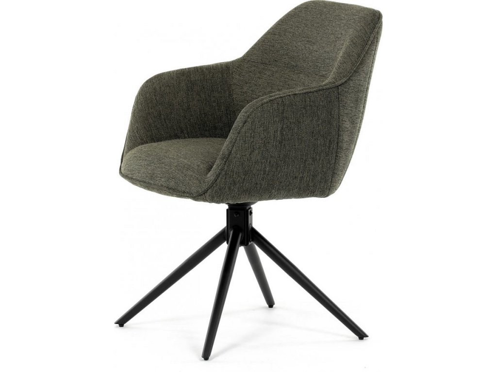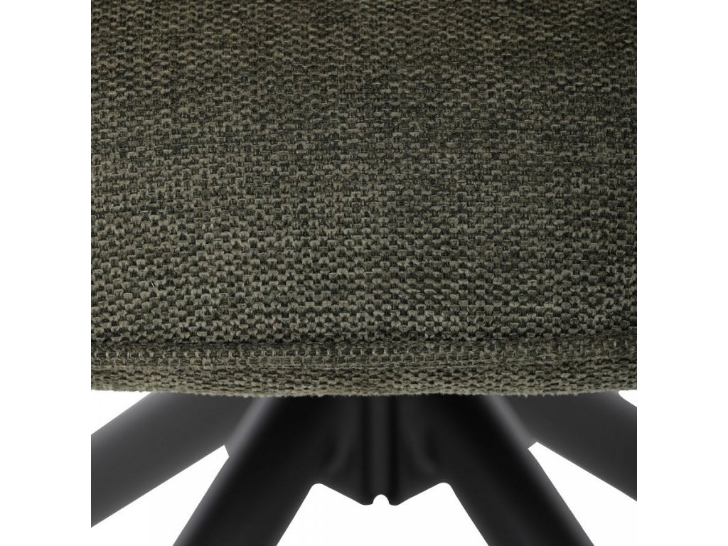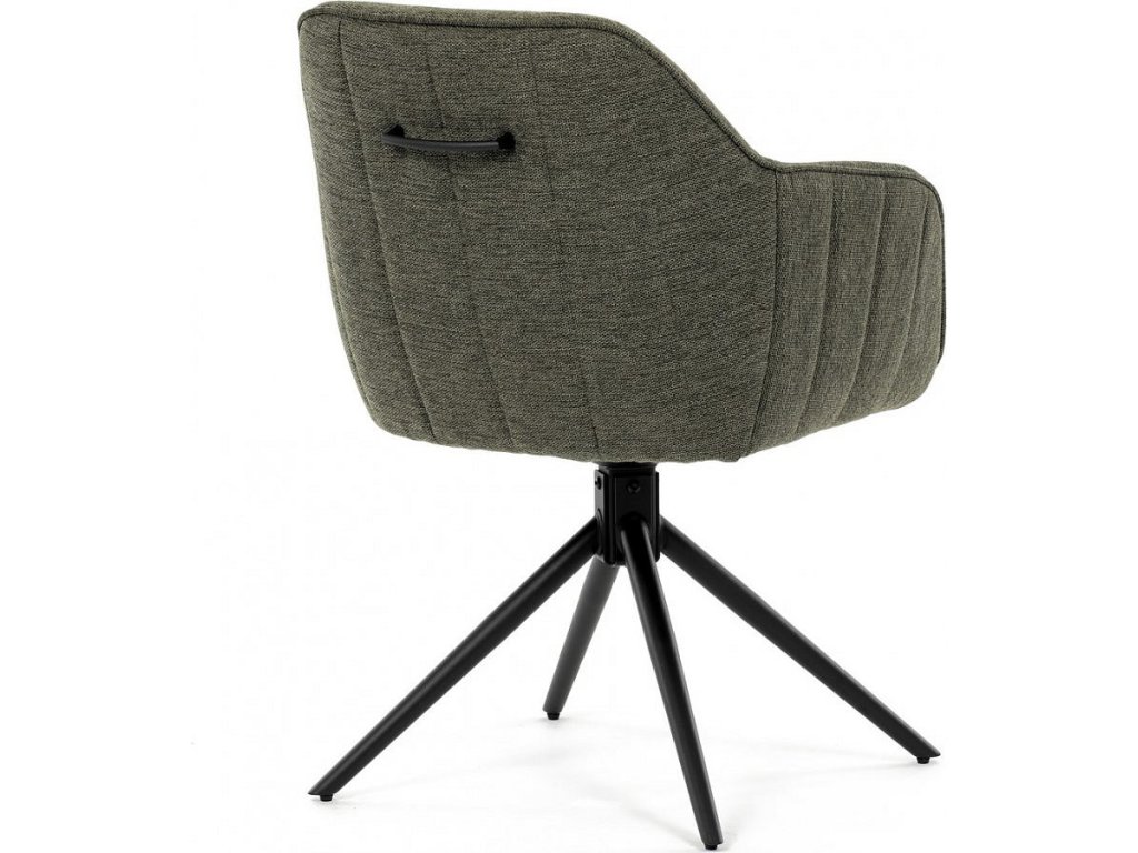 Moderní jídelní židle v zelené barvě s efektním prošitím zádové i přední části opěráku. Prošití je v brvě potahového materiálu. Zadní část opěráku je opatřena vkusným madlem pro snazší manipulaci. Čtyři kovové nohy v matném práškovém nástřiku vycházejí z centrálního bodu ve středu sedáku. Sedák je otočný o P90°+ L 90° s vratným mechanismem - funkce reset.