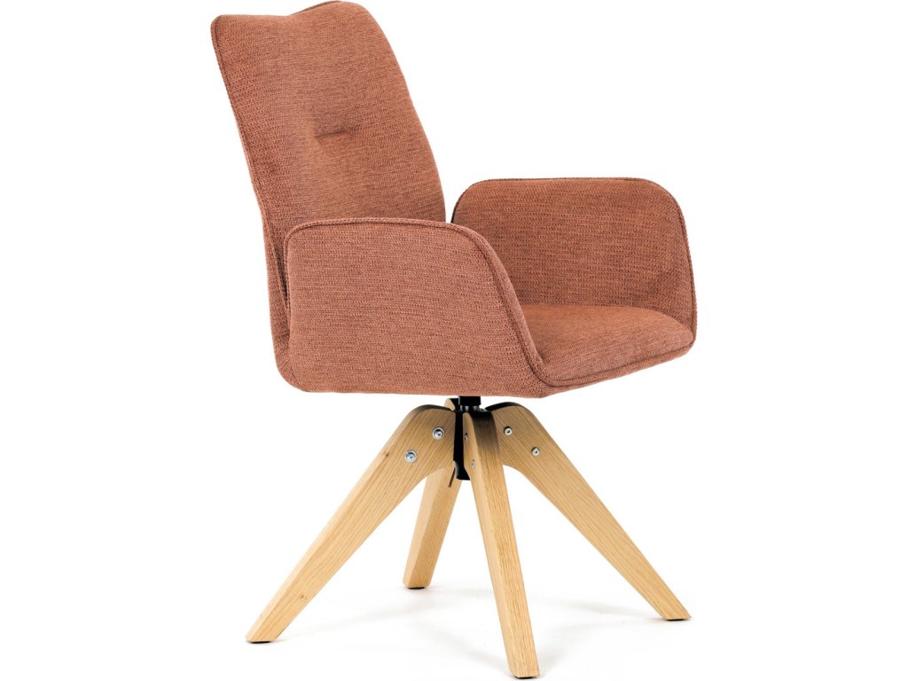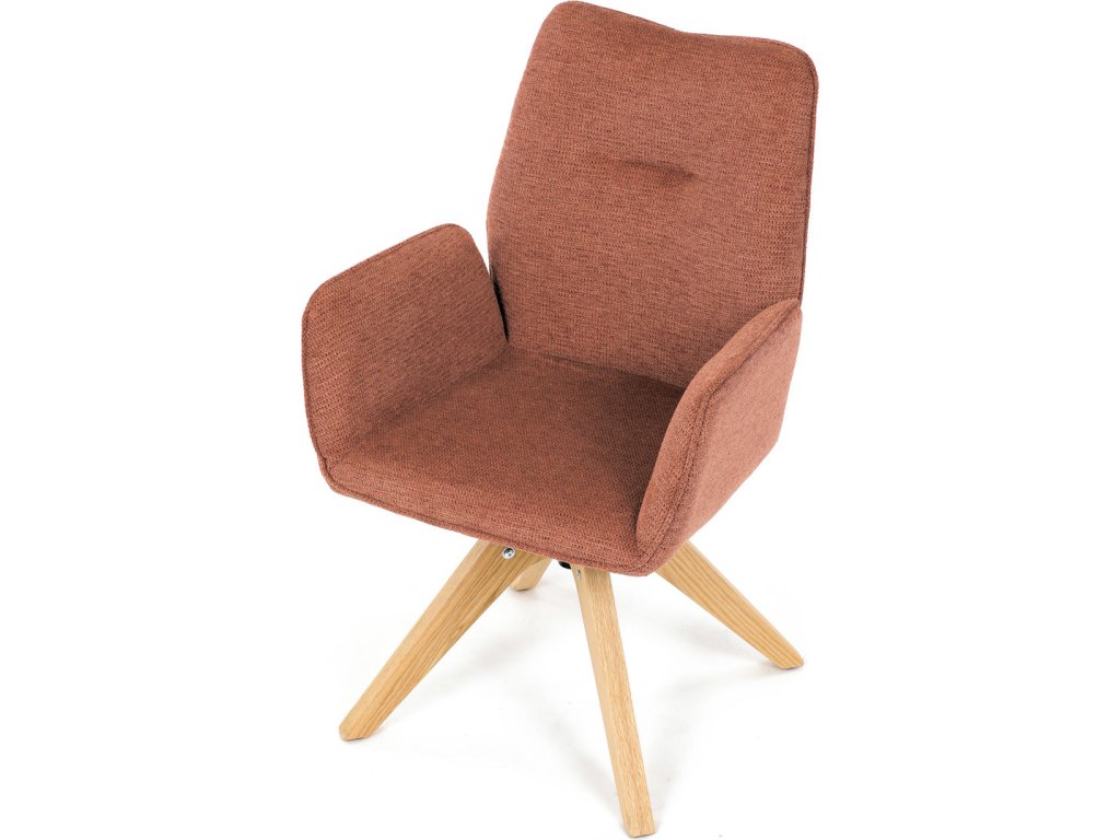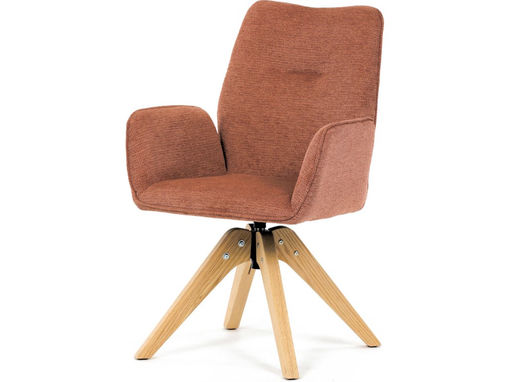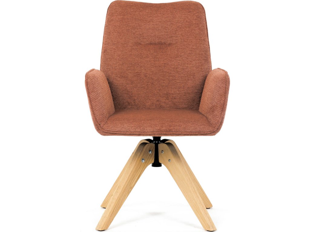 Židle jídelní s područkami, oranžová voděodpudivá látka, dubové nohy, otočná 360° DCH-C2148 ORA2