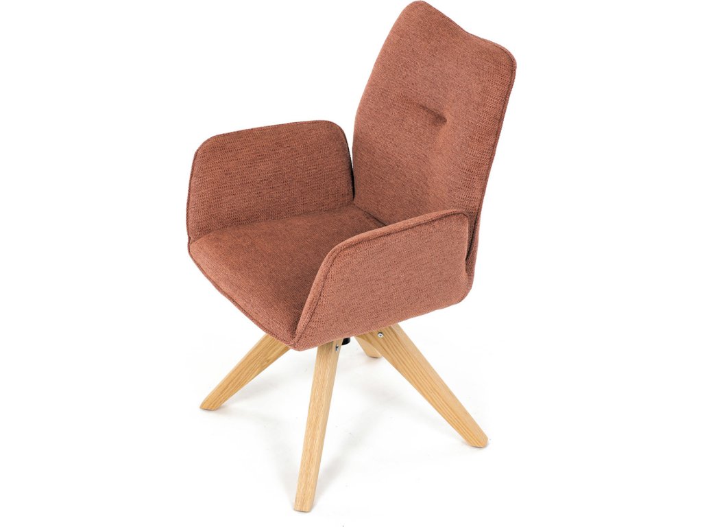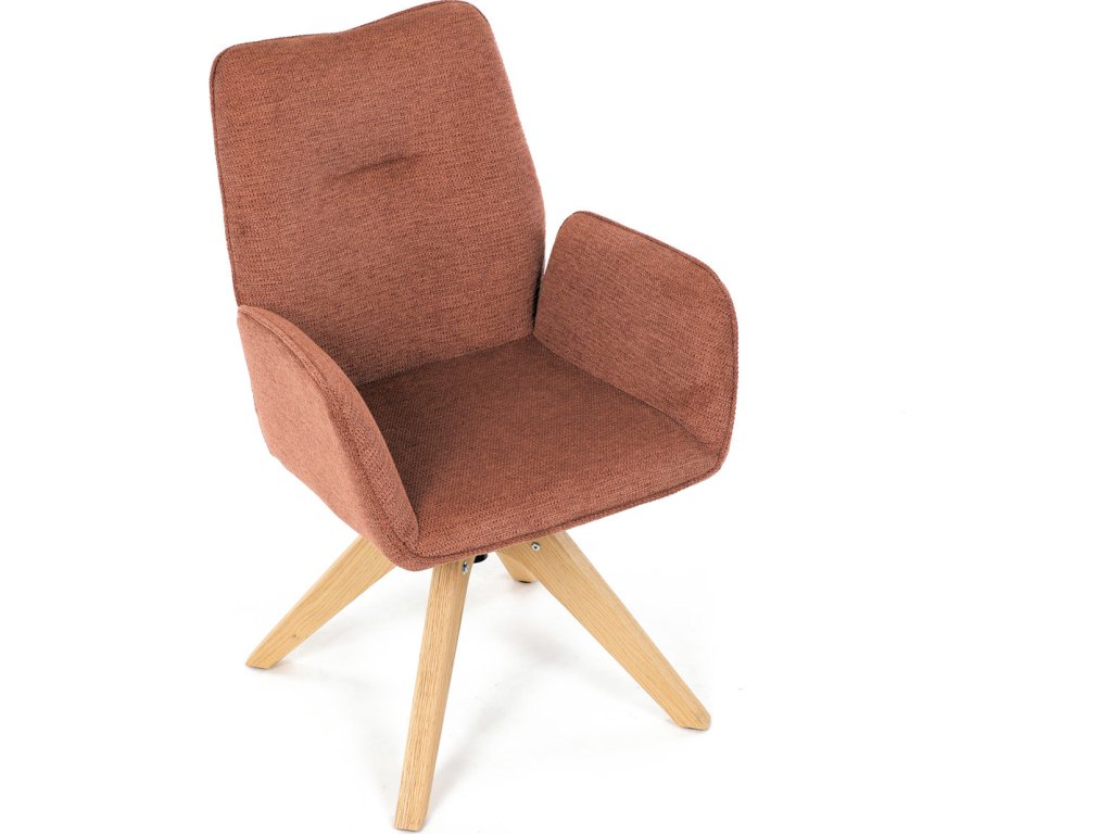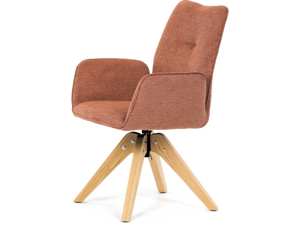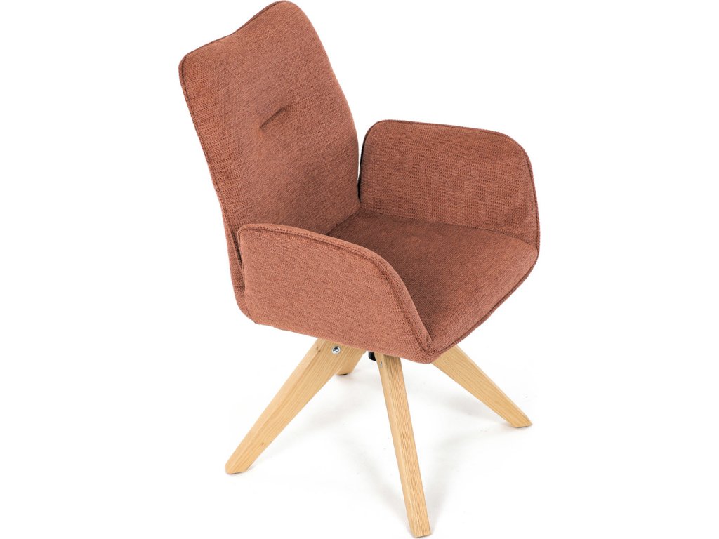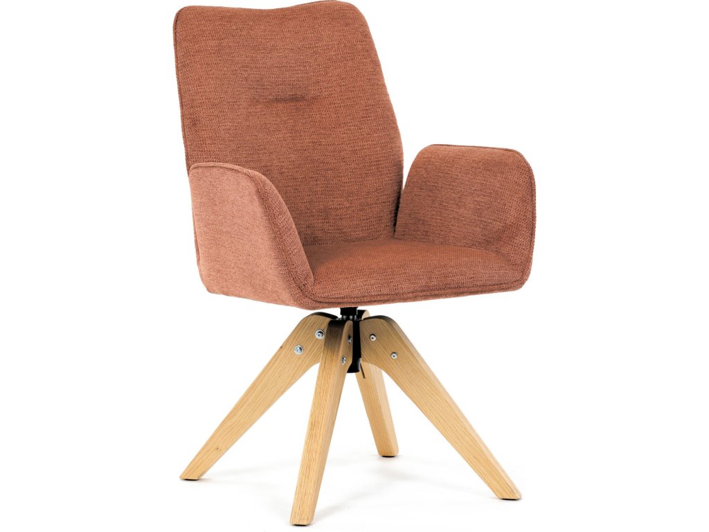 Židle jídelní s područkami, oranžová voděodpudivá látka, dubové nohy, otočná 360° DCH-C2148 ORA2