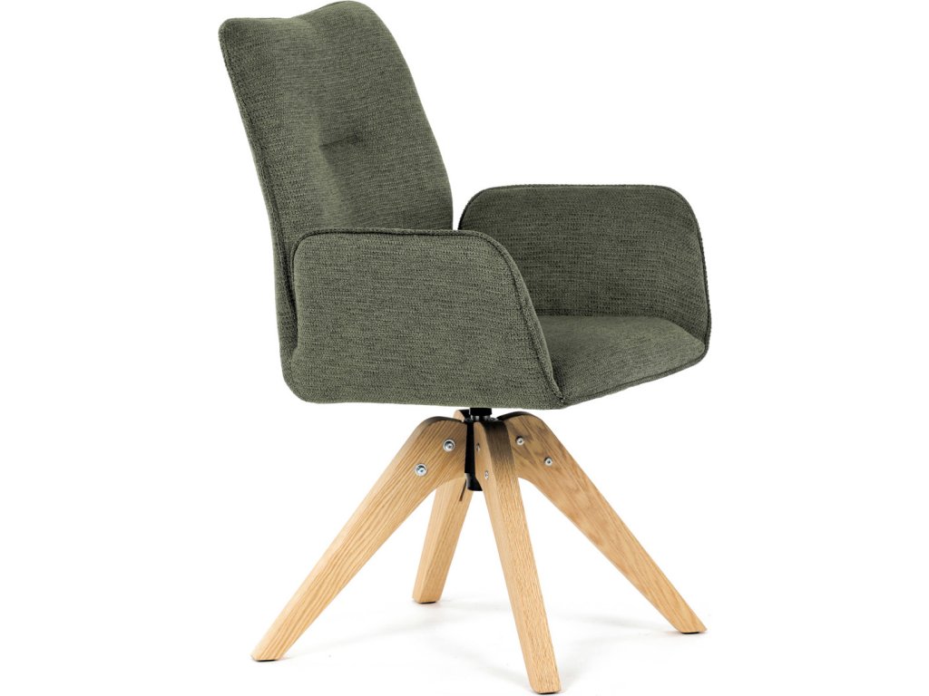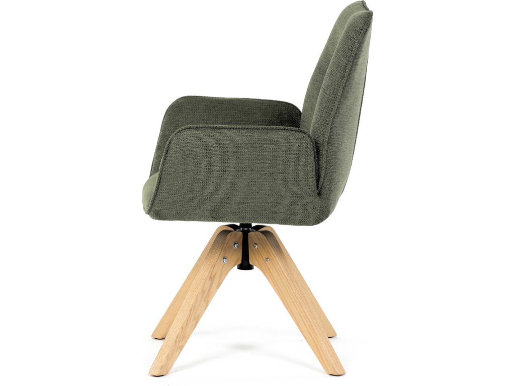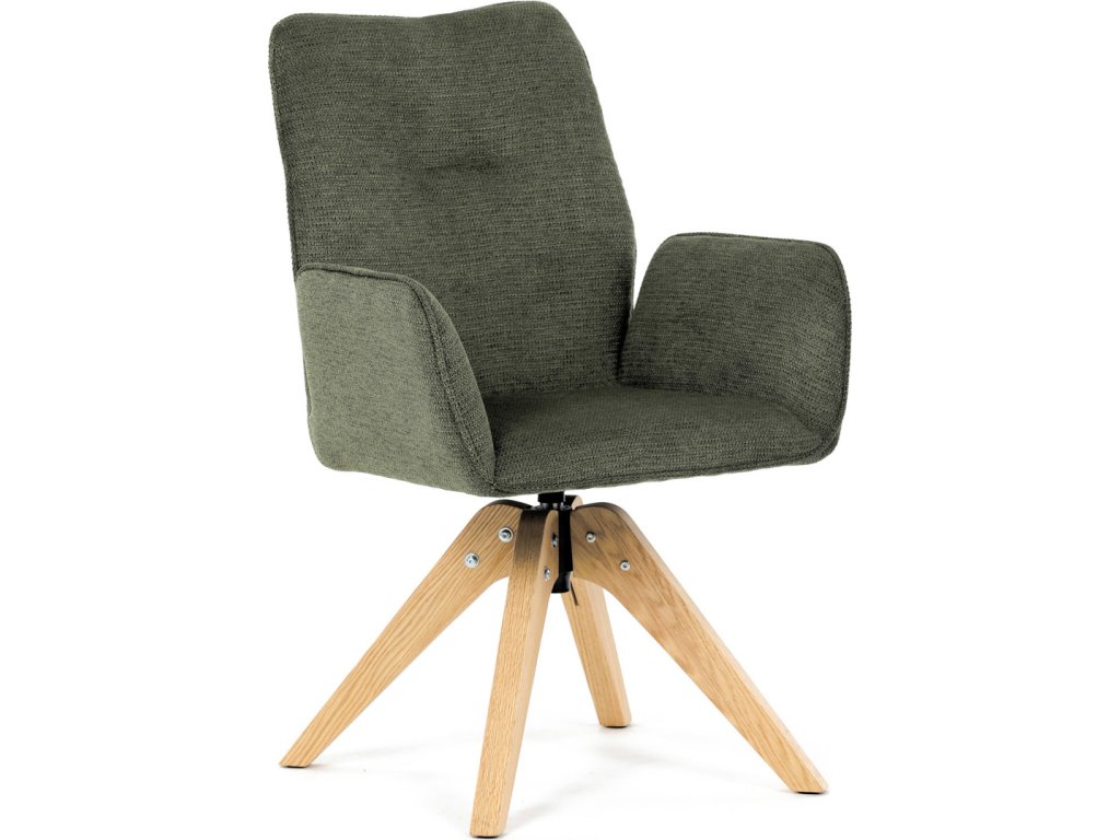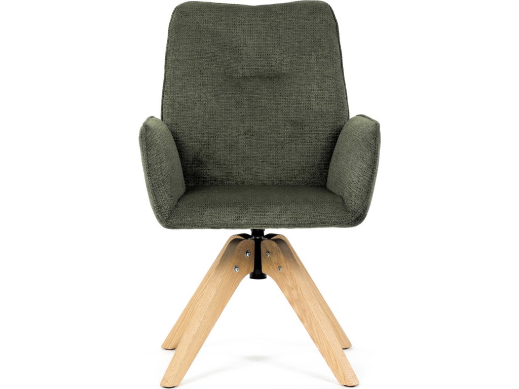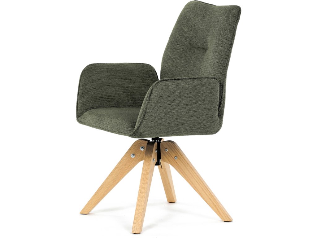 Židle jídelní s područkami, zelená voděodpudivá látka, dubové nohy, otočná 360° DCH-C2148 GRN2