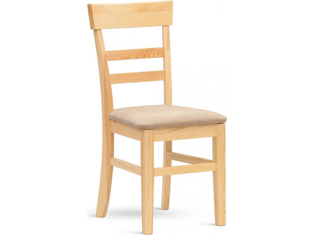 Jídelní židle s čalouněným sedákem. Materiál je borovice masiv.