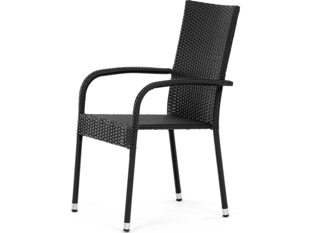 Židle zahradní, černý umělý ratan, kov, stohovatelná. AZC-S2113 BK