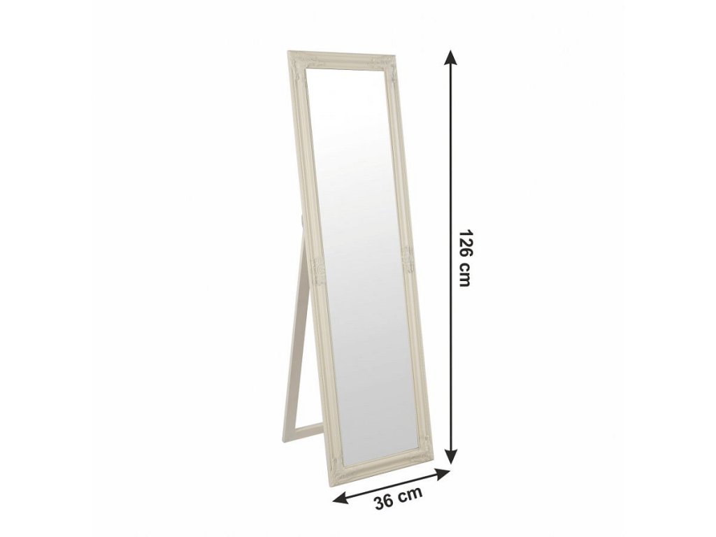 Elegantní zrcadlo s dřevěným rámem smotanové barvy. Rozměry zrcadla (ŠxV) 36x126 cm. Hmotnost: 6,5 kg