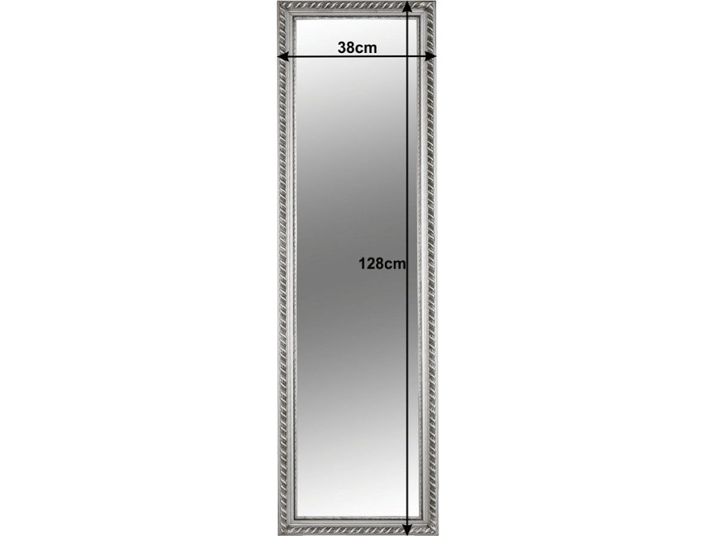 Elegantní zrcadlo s dřevěným rámem stříbrné barvy. Rozměry zrcadla (ŠxV) 38x128 cm.