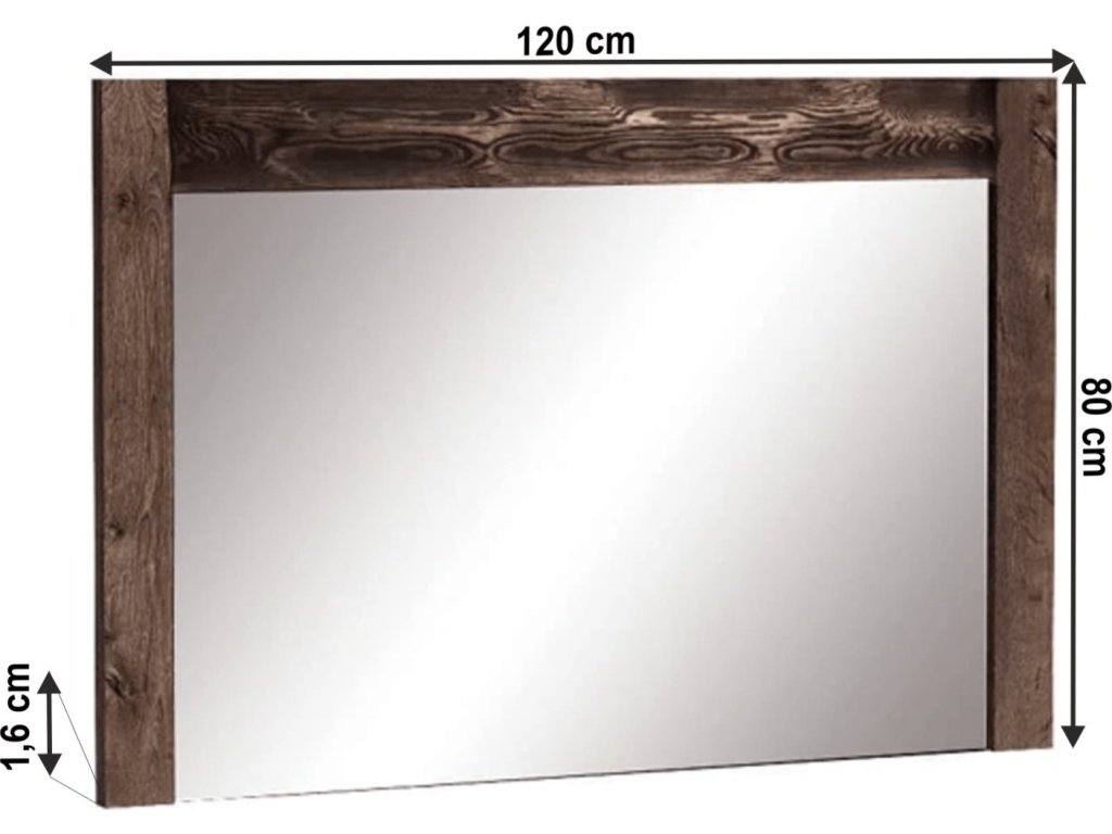 Zrcadlo 12 z luxusního sektorového nábytku. Materiál DTD laminovaná, ABS hrany, barevné provedení: jasan tmavý. Rozměry ŠxV: 120x80 cm. Tloušťka materiálu: 16 mm Dodávané v demontu.