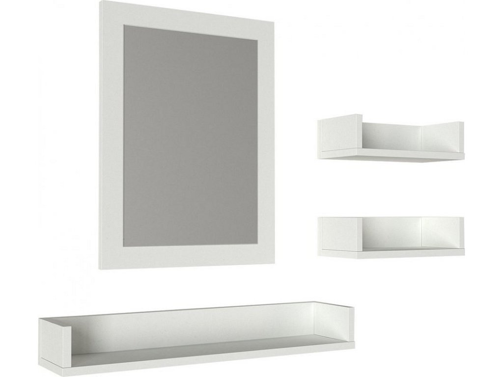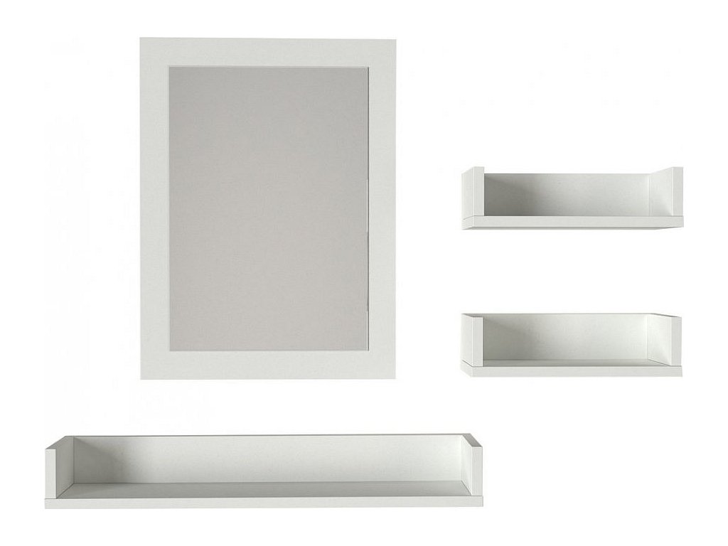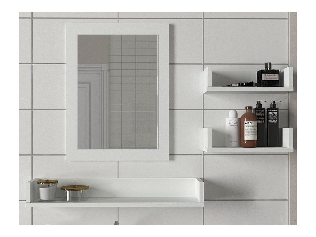 CASA 28072 Zrcadlo do koupelny se třemi závěsnými policemi, rám a police jsou vyrobeny z kvalitního lamina o tl.18 mm hraněné PVC páskou, odolného proti poškrábání v barvě matná bílá. Rozměry polic (Š x V x H cm) 72 x 10 x 16,3 cm a dvě police mají rozměr 35 x 10 x 16,3 cm. Dodáváme v demontovaném stavu.