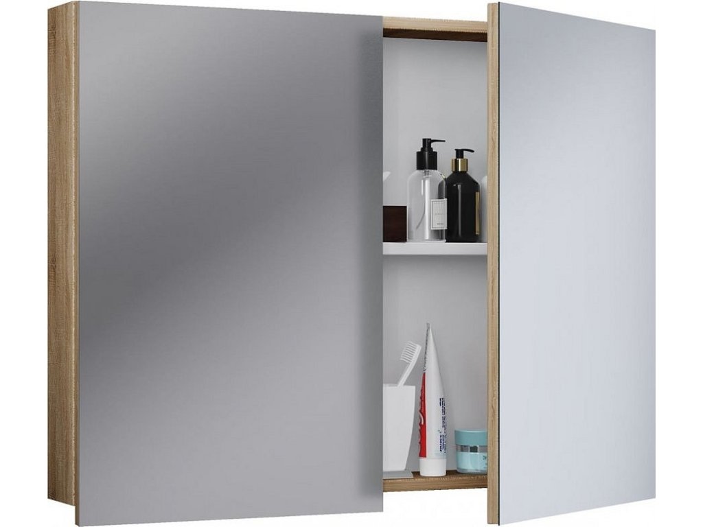 Hlavní vlastnosti: Zrcadlová skříňka „VCB 1“ má nadčasový design a hodí se do každé koupelny. Za otočnými dvířky se nachází jedna velká přihrádka, která nabízí dostatek úložného prostoru pro hygienické potřeby a další náčiní. Tato sada je mimořádným lákadlem pro vaši ložnici. - Rozměry cca V 62 x Š 80 x H 12 cm - Zrcadlo z odolného skla - Korpus z odolného a odolného melaminu - Dvoje velké otočné dveře s kovovými panty - Jedna variabilní police - Snadné a bezpečné upevnění na zeď