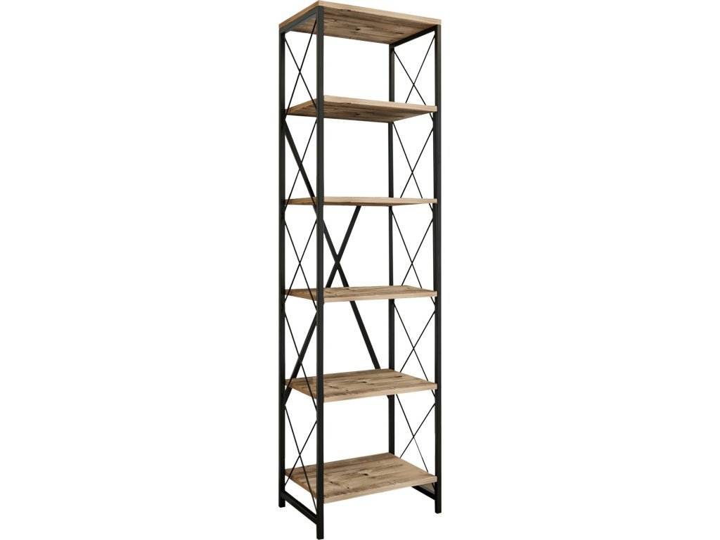 Knihovna obsahuje čtyři prostorné police, které poskytují dostatek prostoru pro uložení knih, dekorací nebo rostlin. Její minimalistická konstrukce s borovicovým dekorem a černými kovovými prvky dodává interiéru moderní a stylový vzhled, který se hodí do loftových a industriálních prostorů.